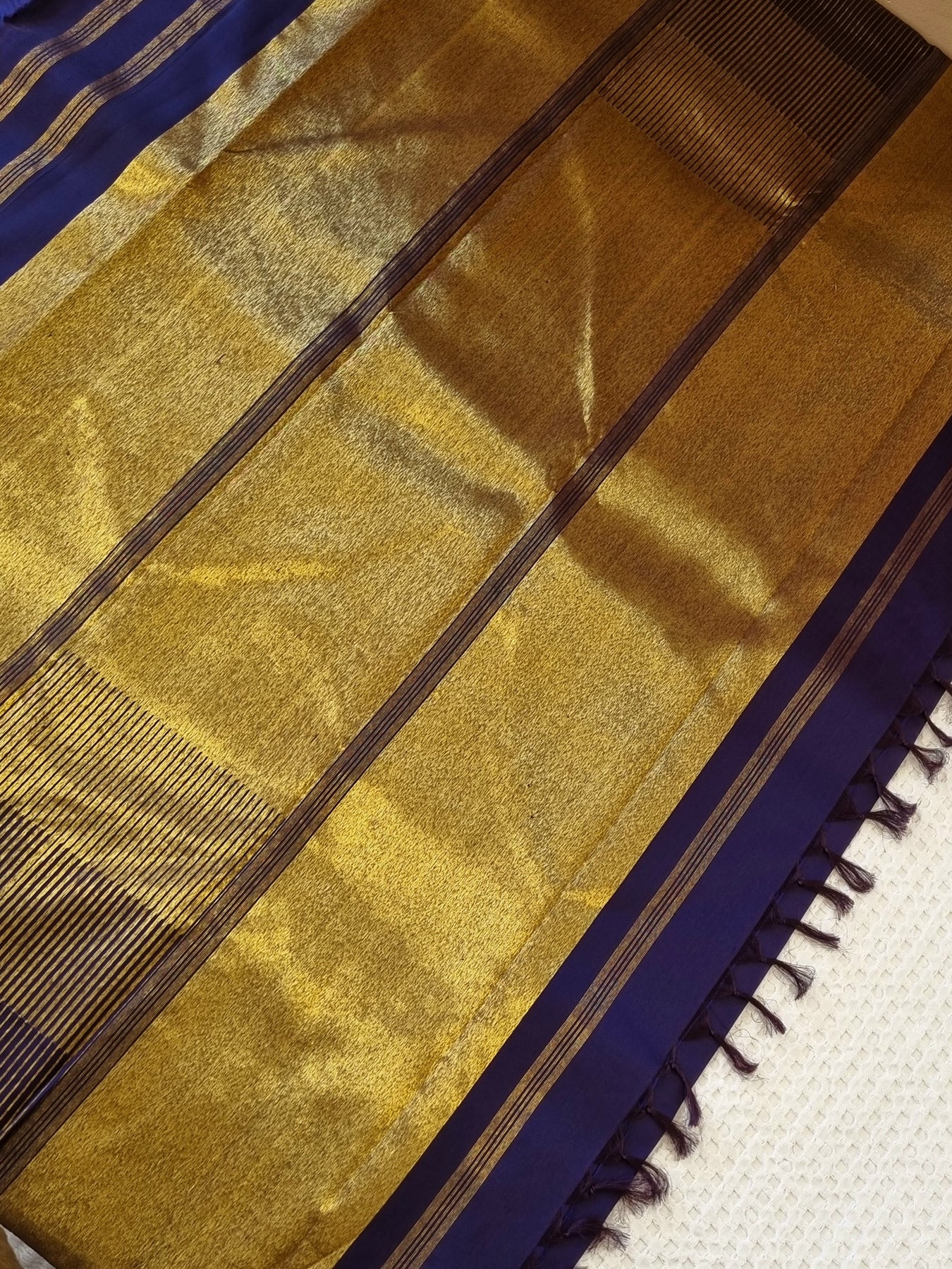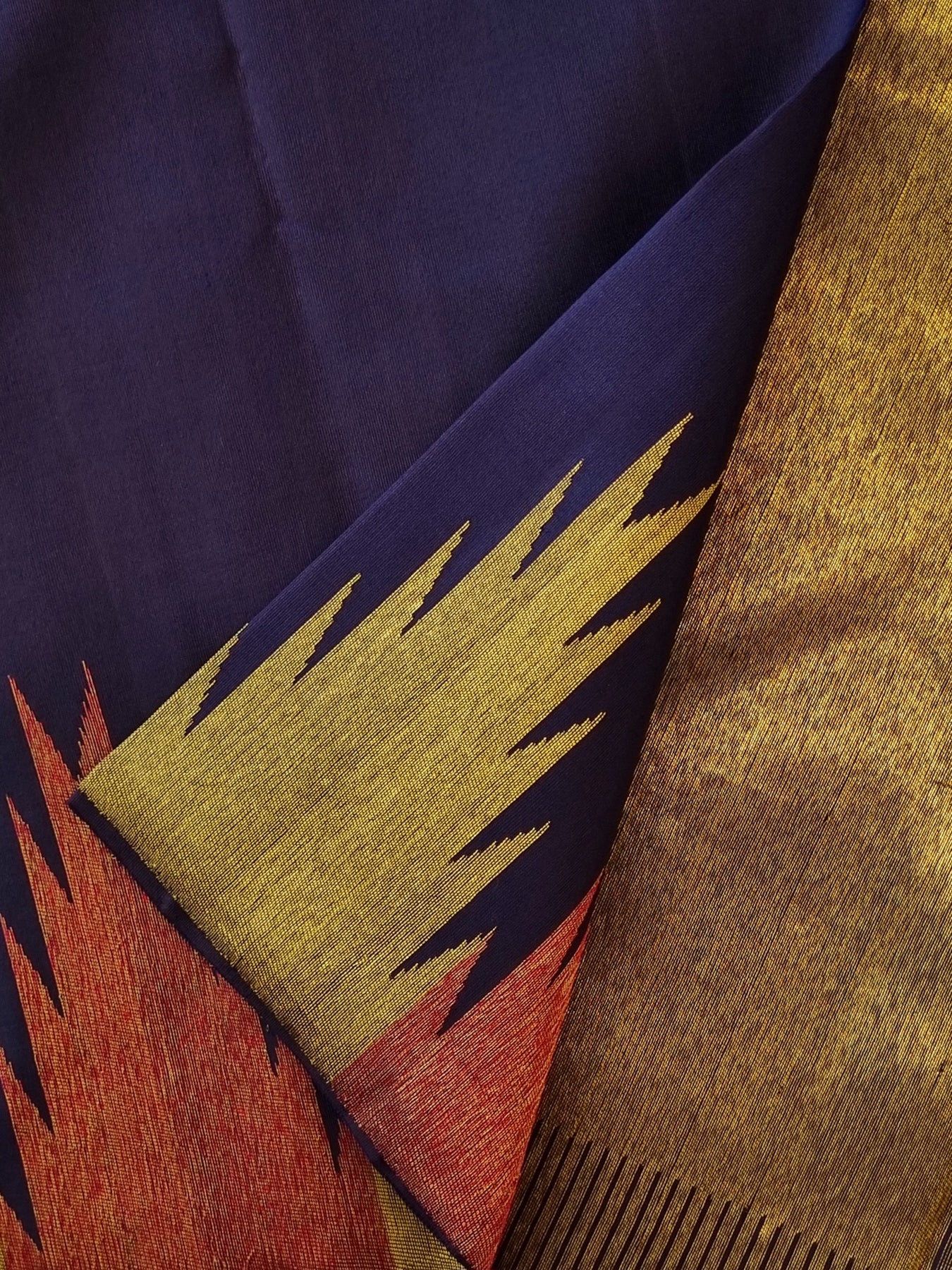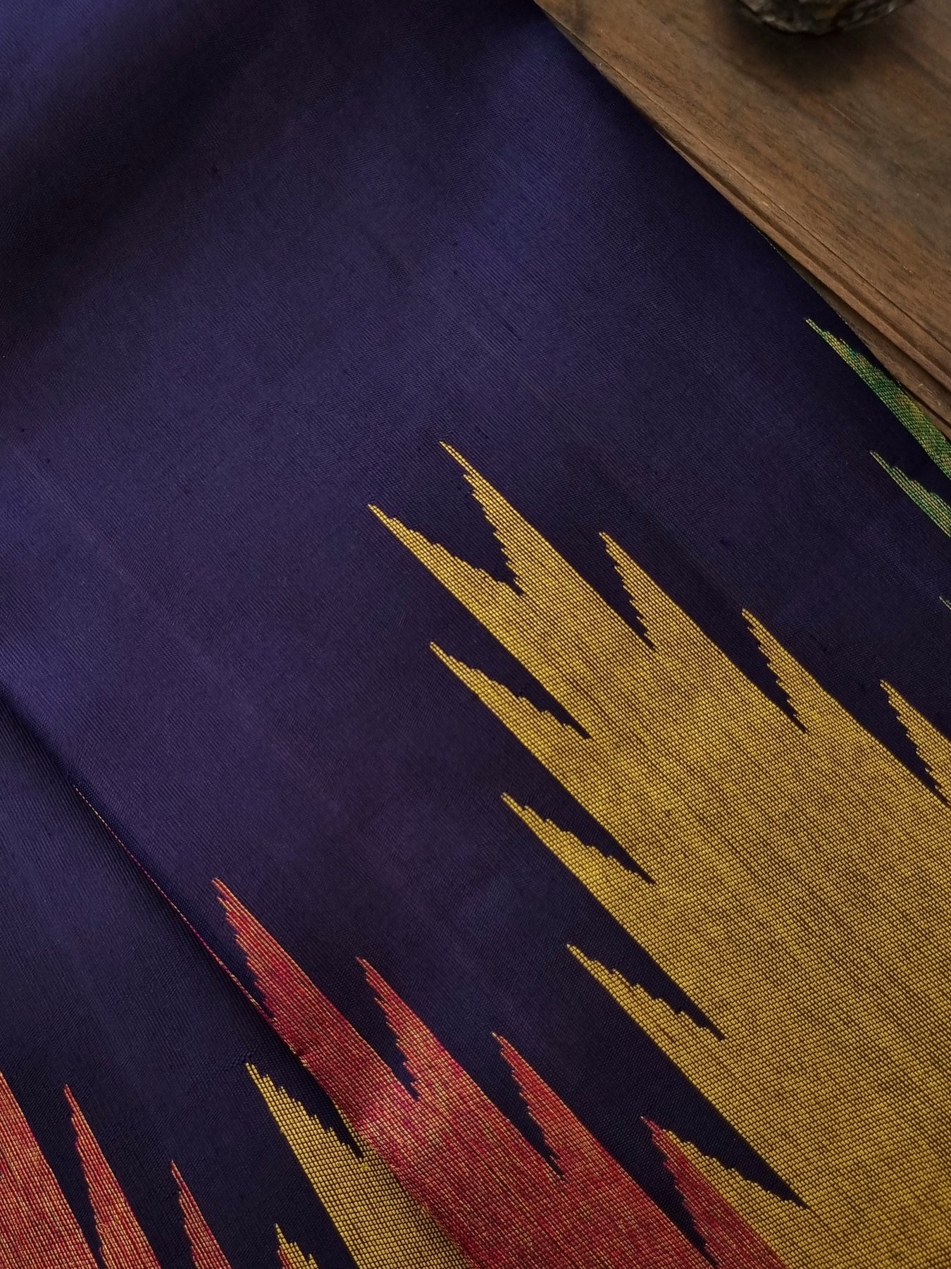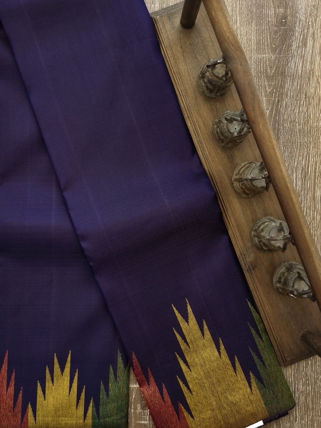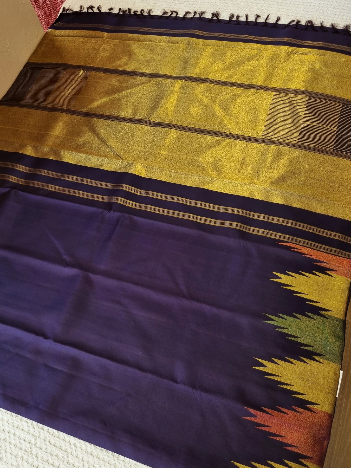 Handloom Kanjivaram Pure Silk Saree with Contrast Temple Borders