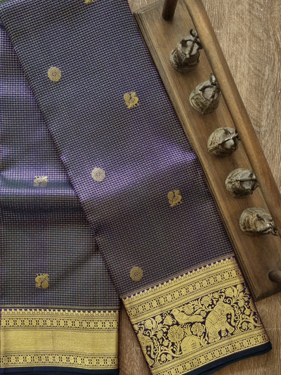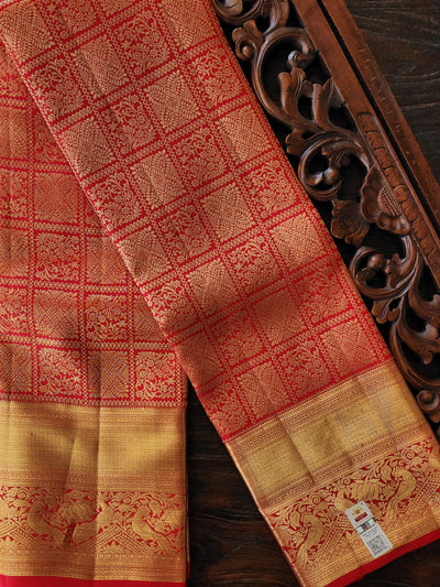 Checked Kanjivaram Pure Silk Saree with Gold Zari Borders