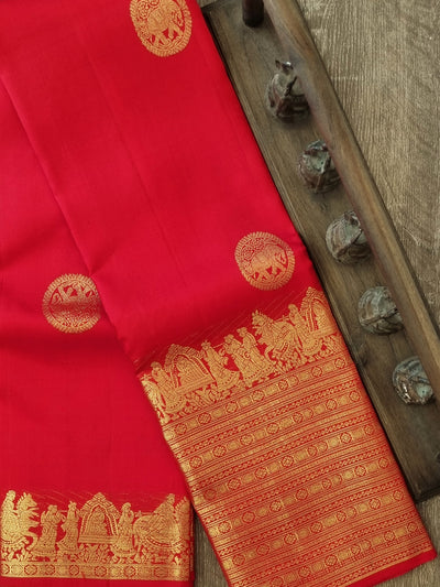 Handloom Brocade Kanjivaram Pure Silk Saree with Gold Zari Borders
