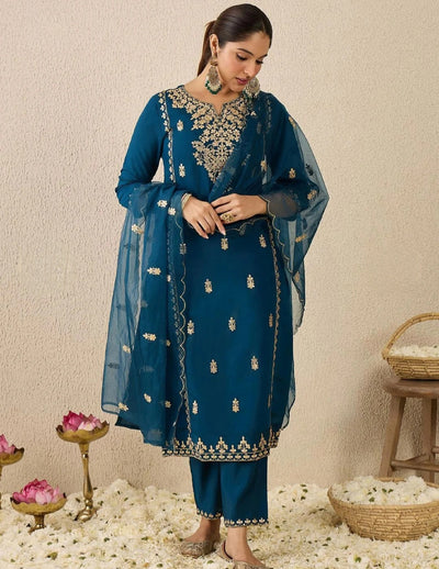 Blue Embroidered Thread Work Kurta Set