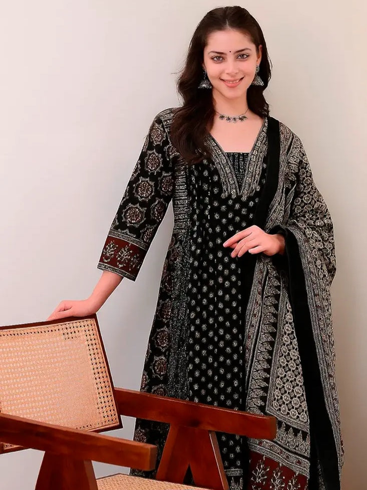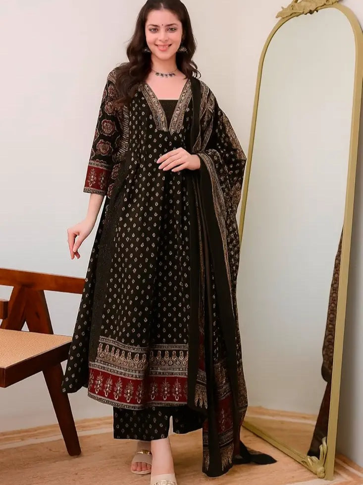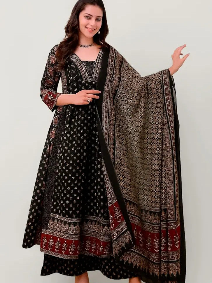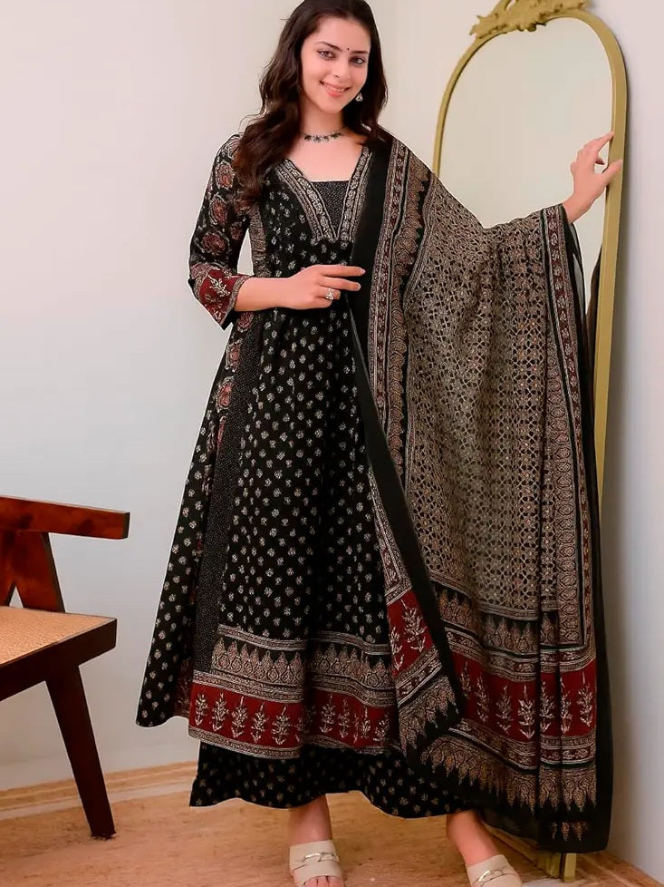 Ethnic Motif Printed Anarkali Kurta with Trousers and Dupatta