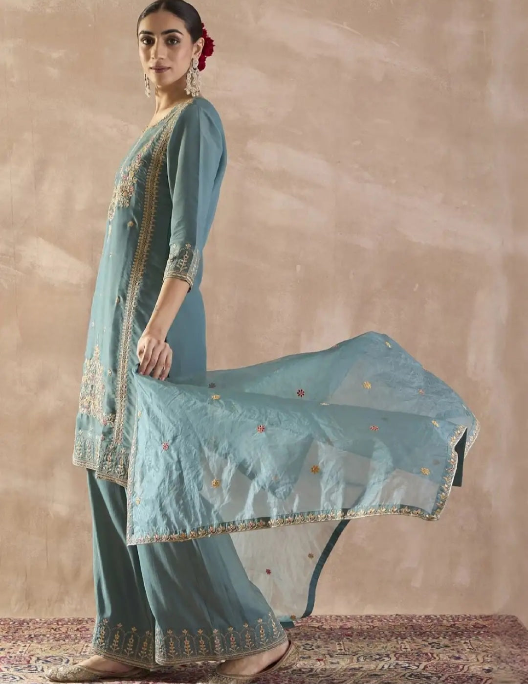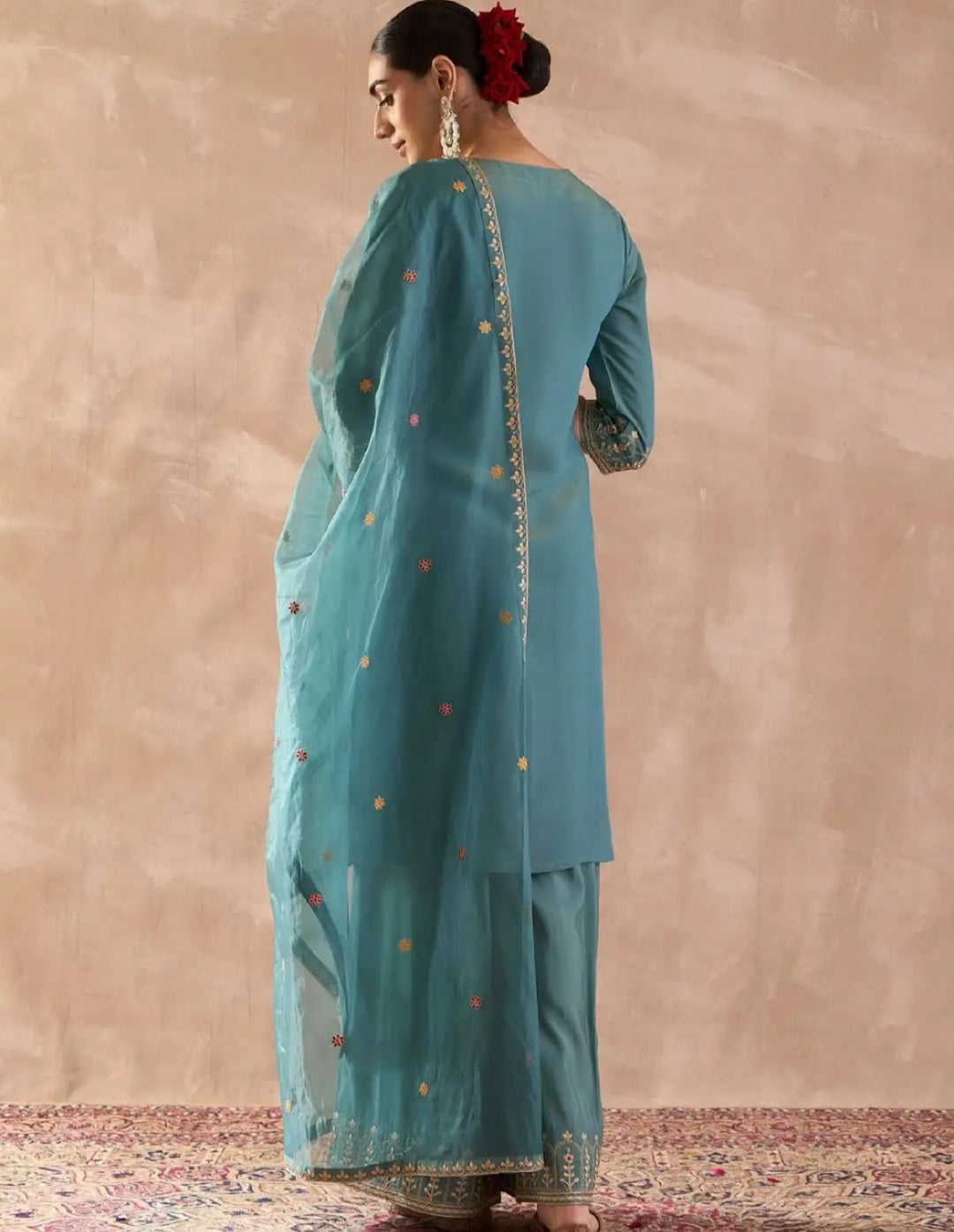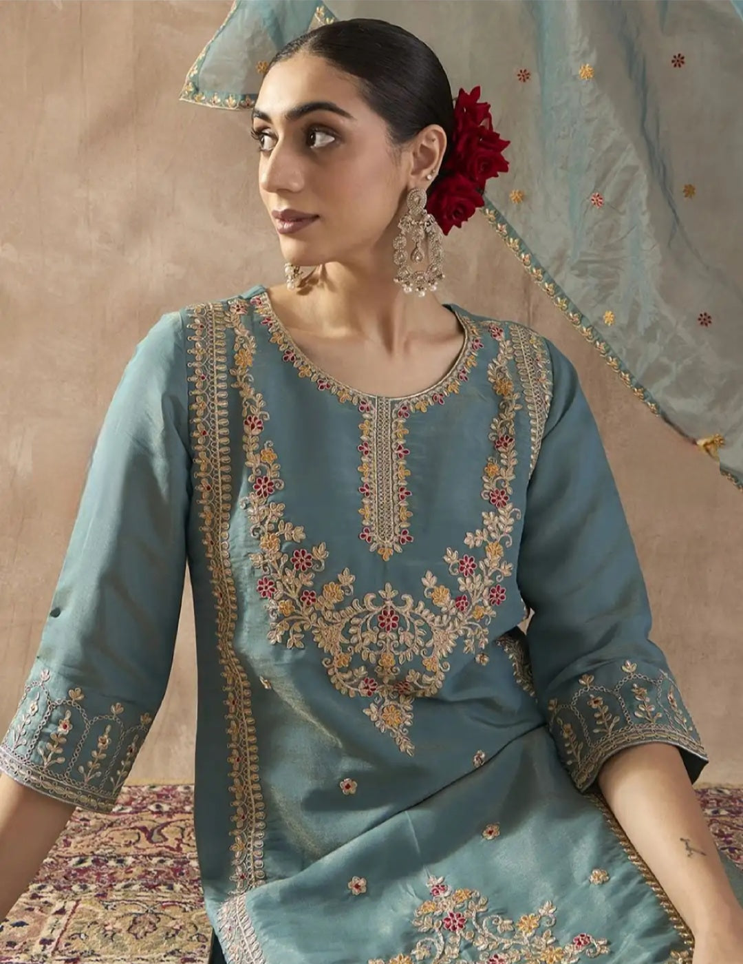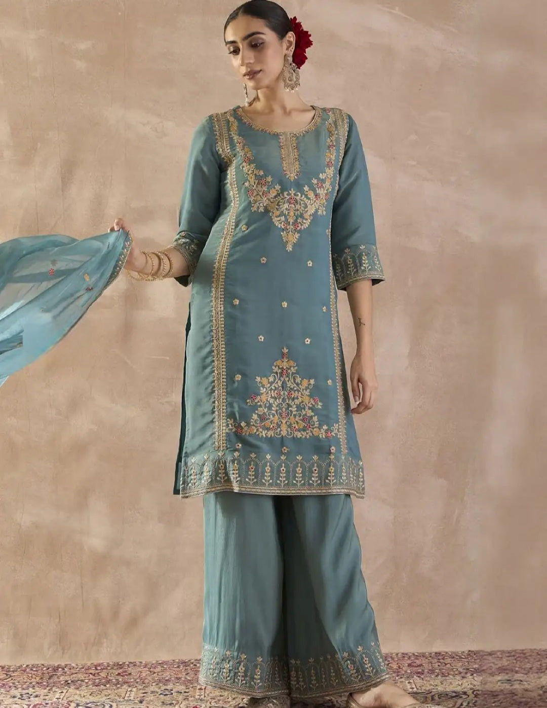 Floral Embroidered Kurta Set with Palazzos & Dupatta