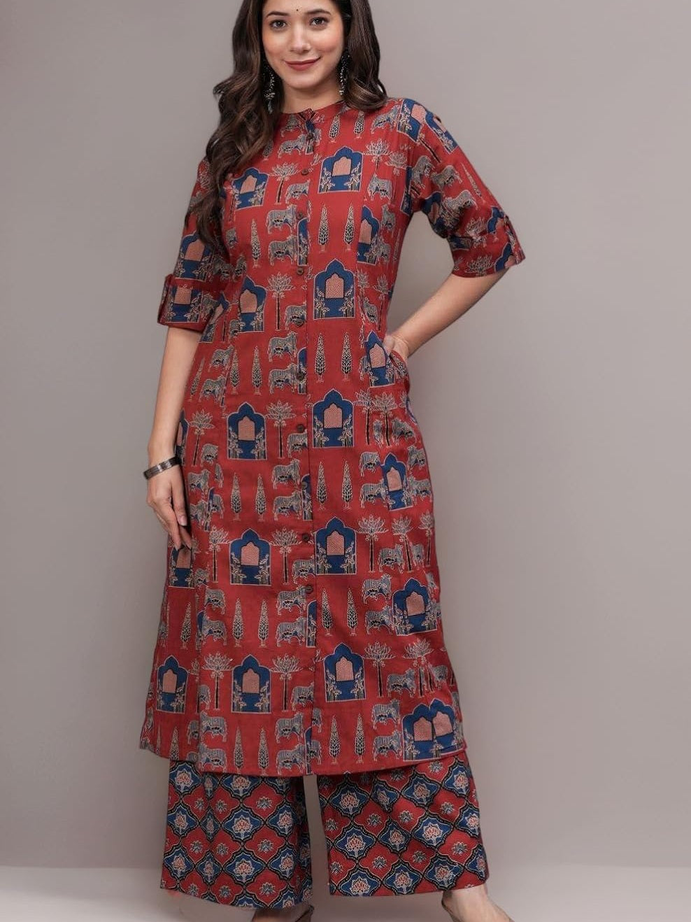 Ethnic Motif Printed Cotton Kurta & Palazzo Set