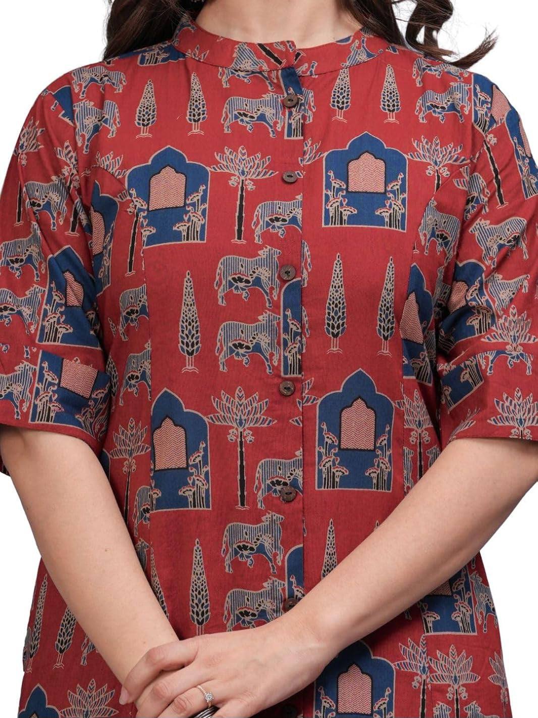 Mandarin Collar Kurta with 3/4 Sleeves