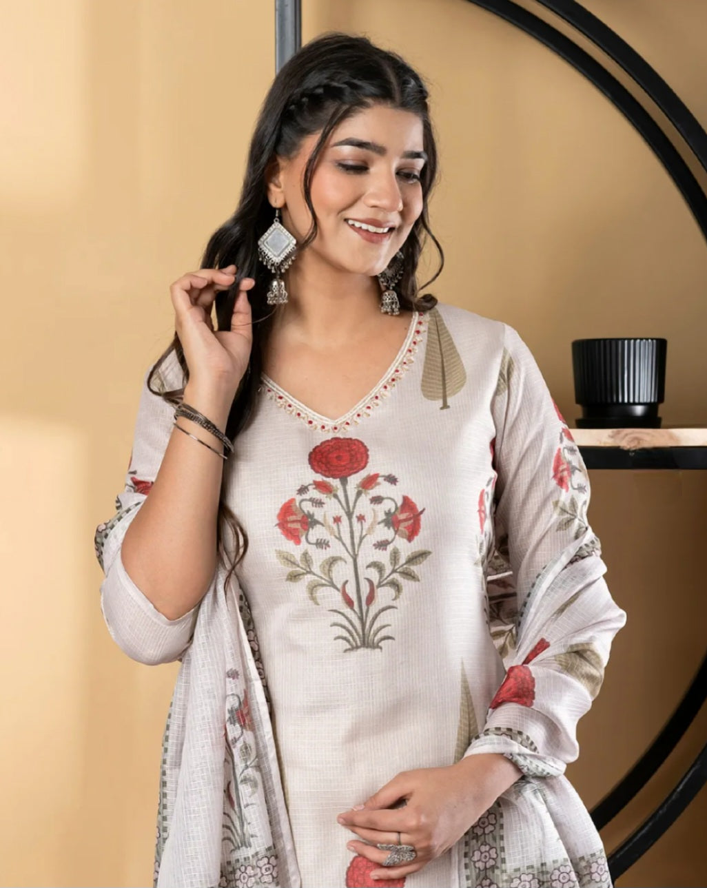 Printed Kurta with a Printed Dupatta