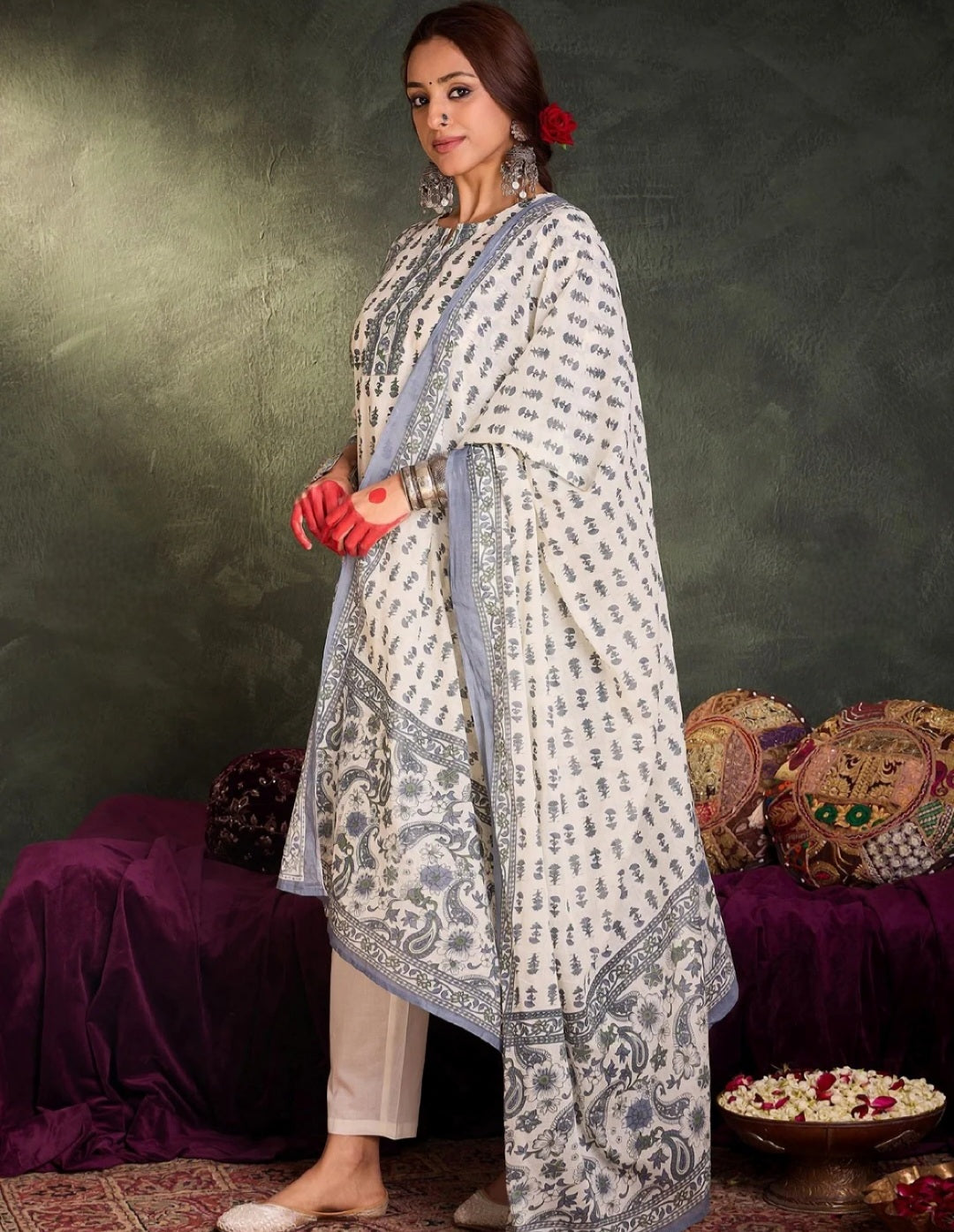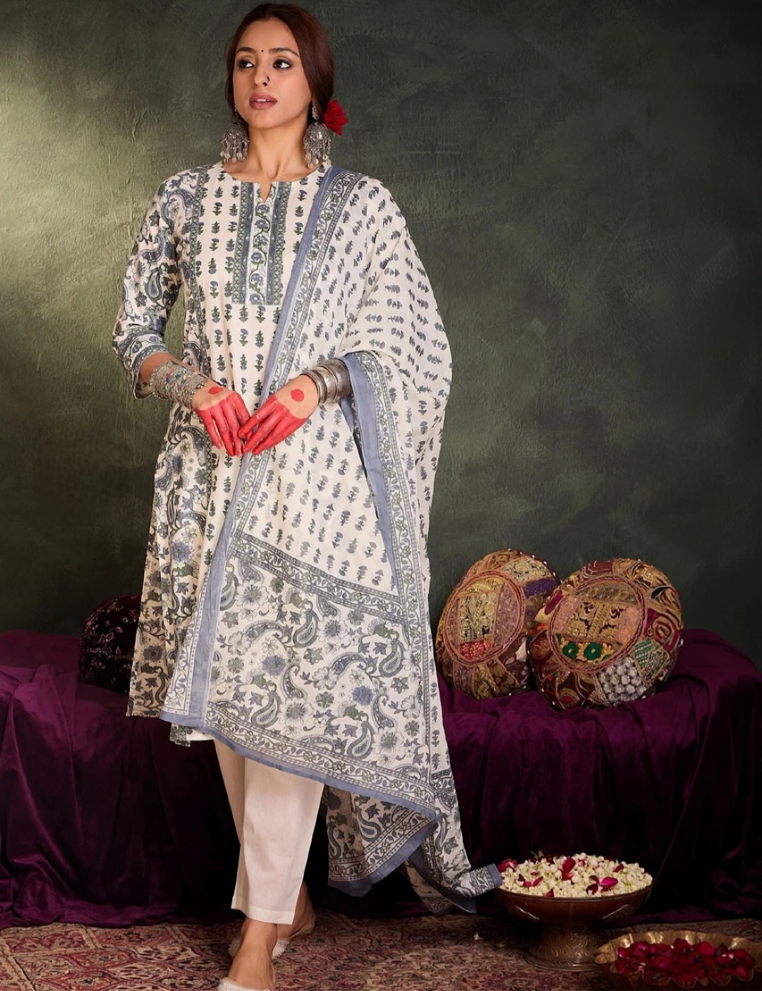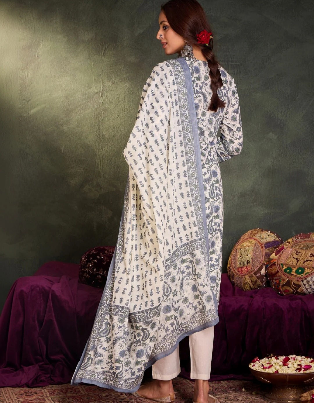 Ethnic Motifs Printed Straight Kurta with Trousers and Dupatta