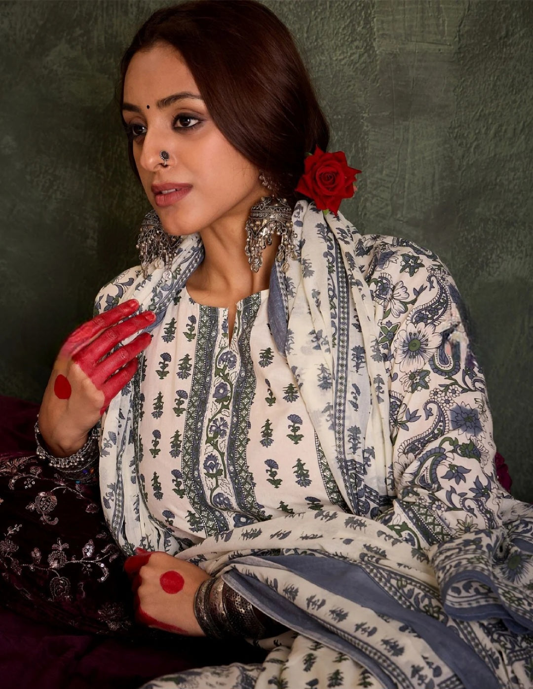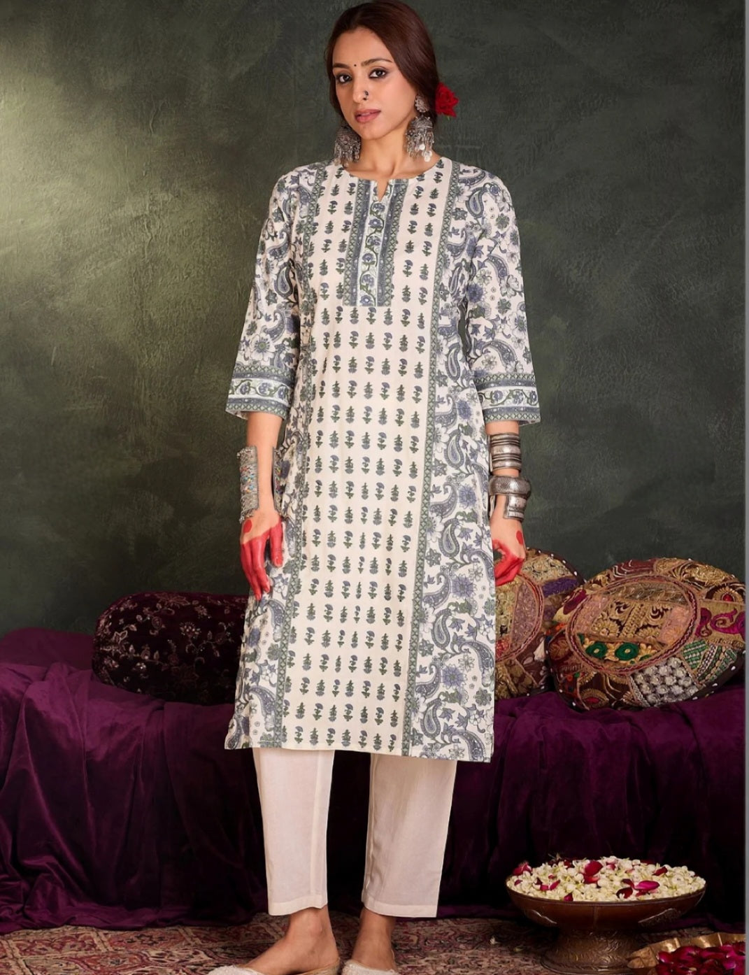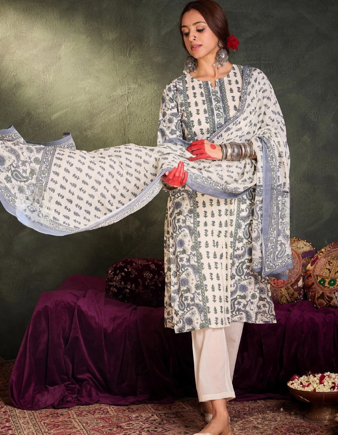 Ethnic Motifs Printed Straight Kurta with Trousers and Dupatta