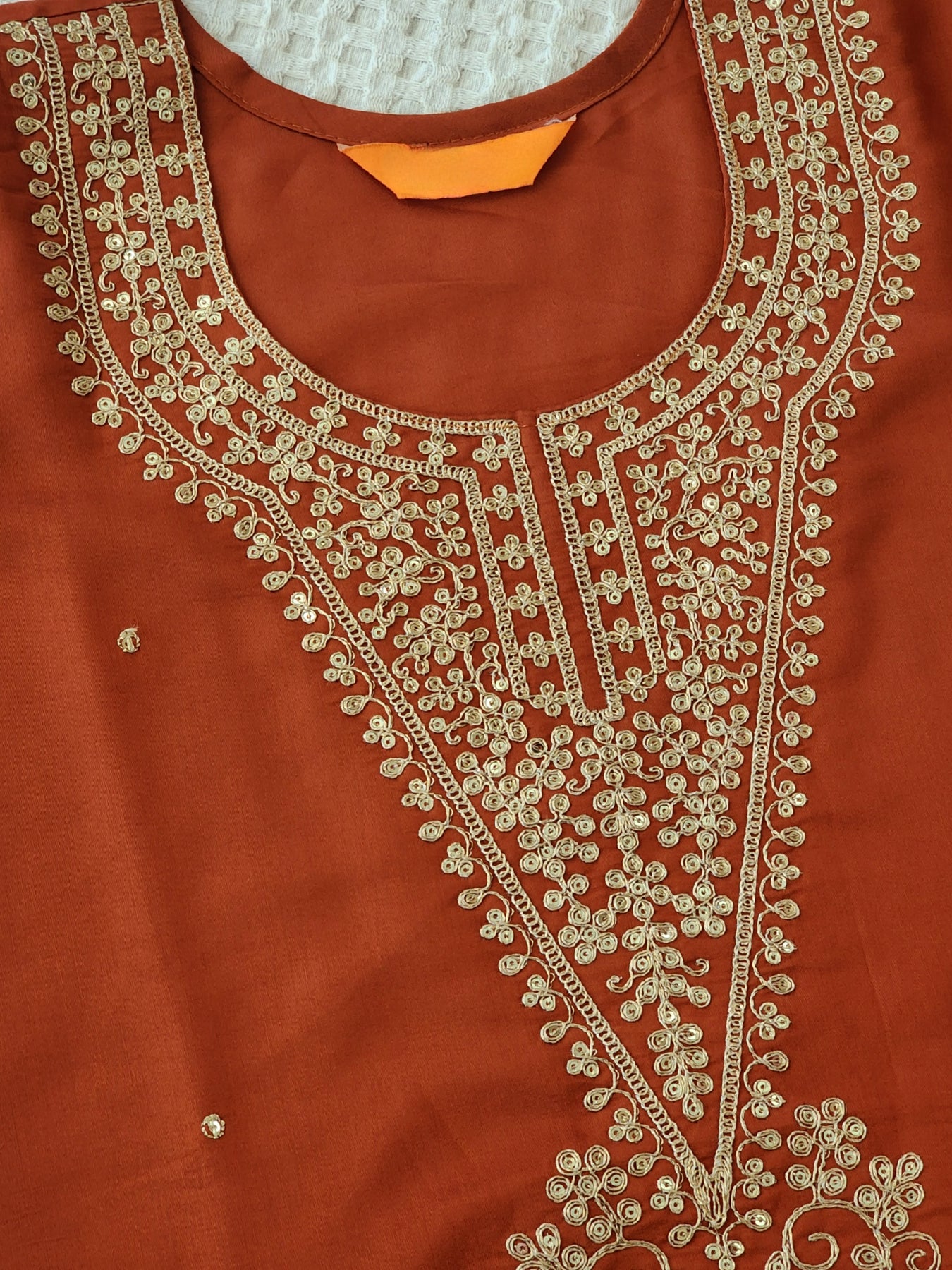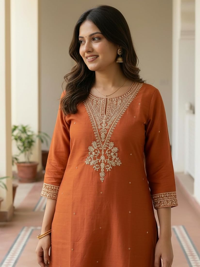 Orange Kurta with Embroidery, paired with Pants