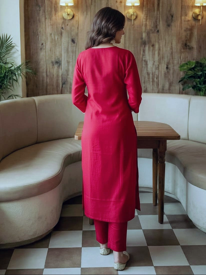 Pink Embroidered Cotton Kurta Set