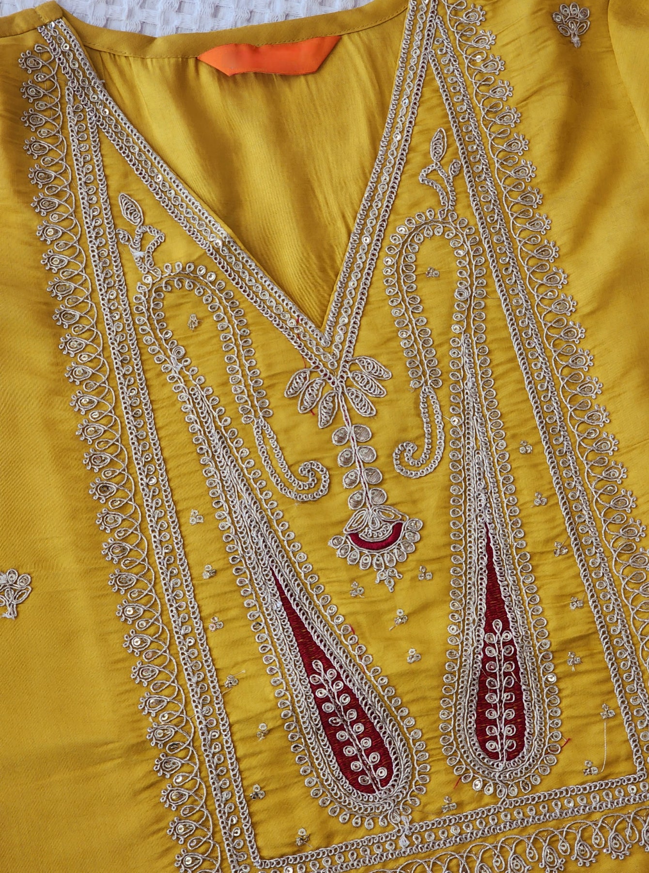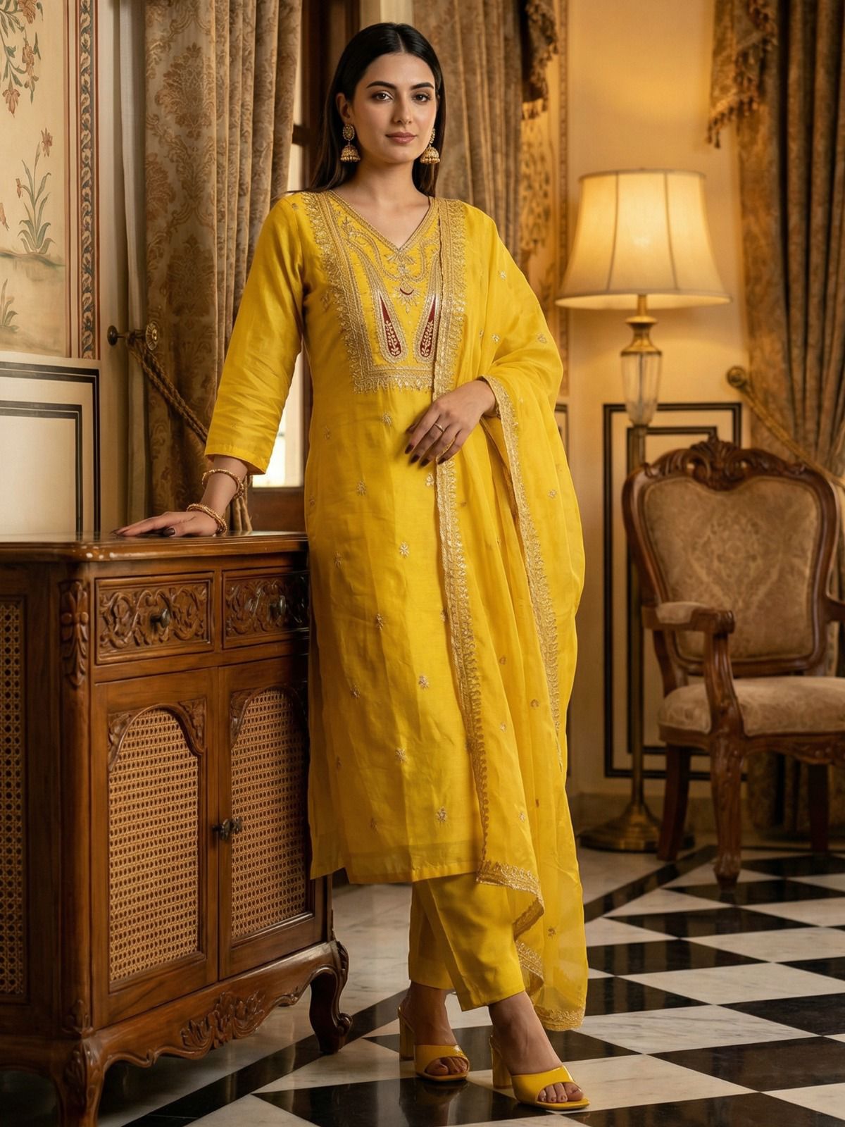 Yellow Kurta with Embroidery, paired with Pants