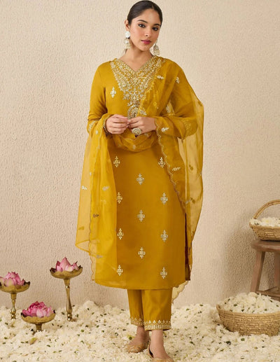 Mustard Embroidered Kurta Set