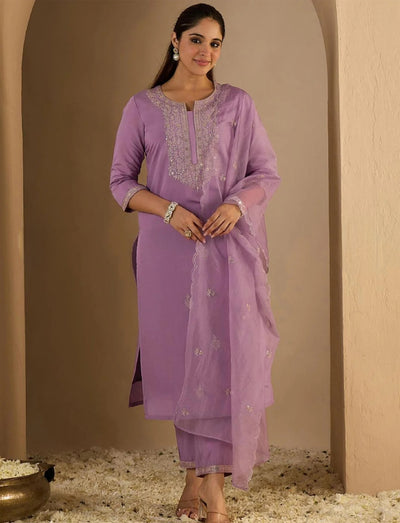 Lavender Embroidered Kurta Set