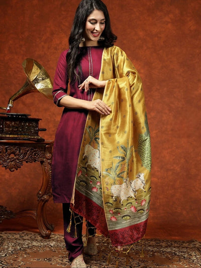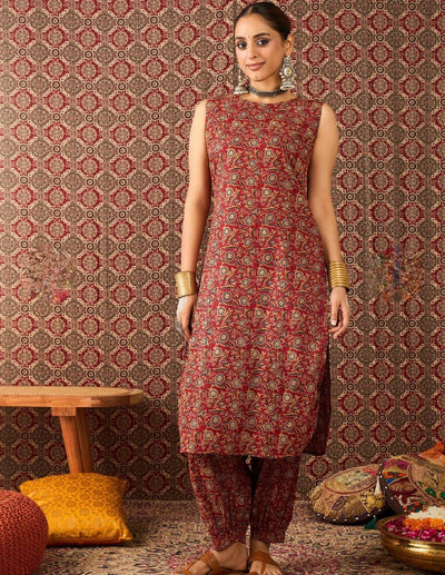 Maroon Ethnic Motifs Printed Cotton Kurta Set