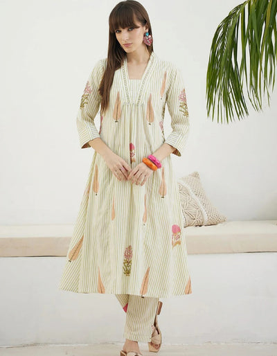 Ethnic Motif Printed Cotton Kurta & Palazzo Set