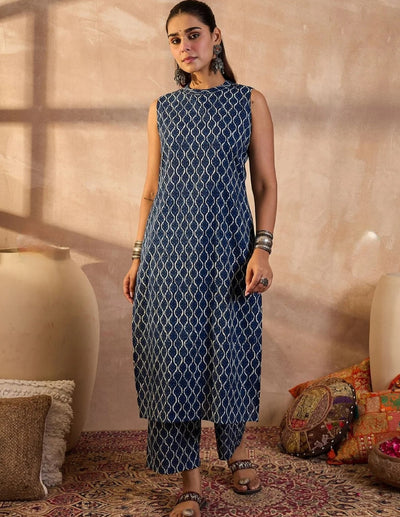 Blue Ethnic Motif Printed Cotton Kurta & Pants