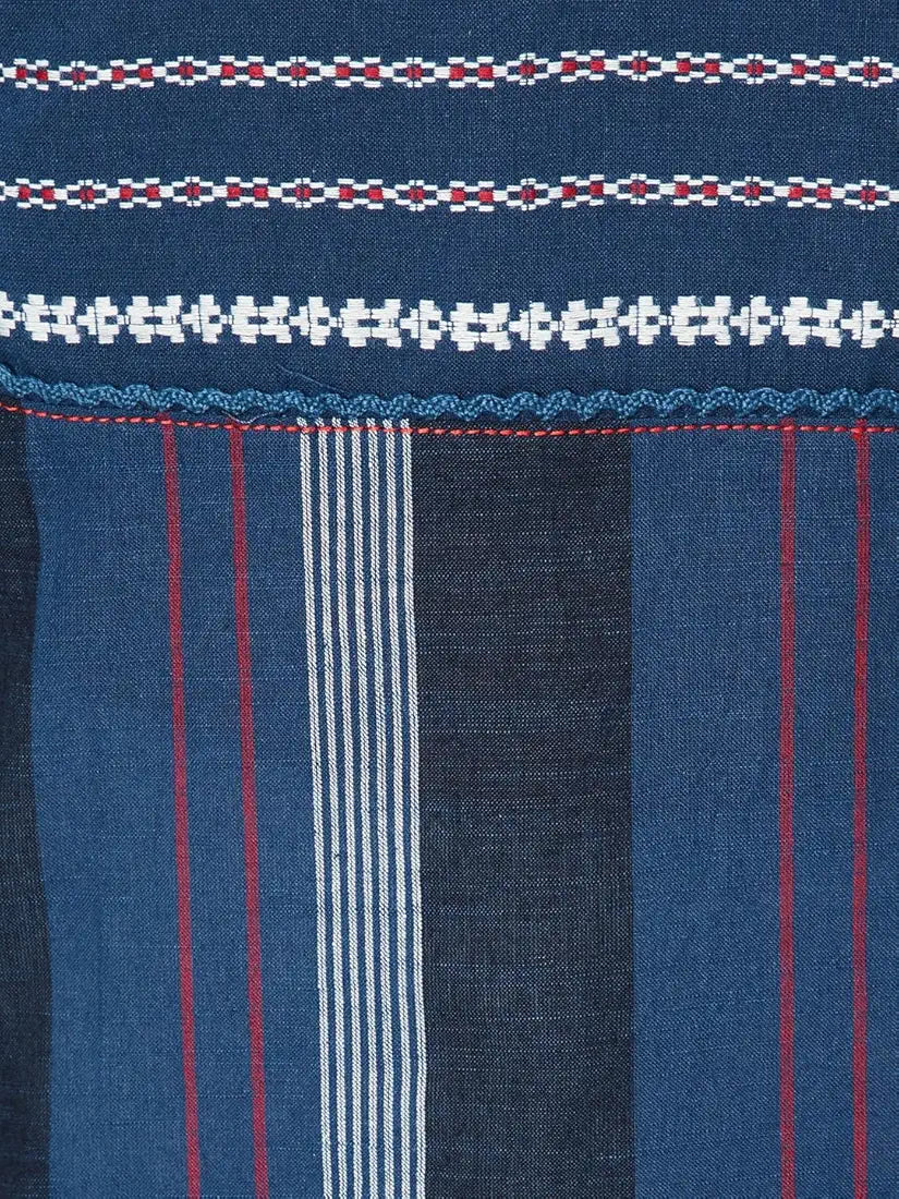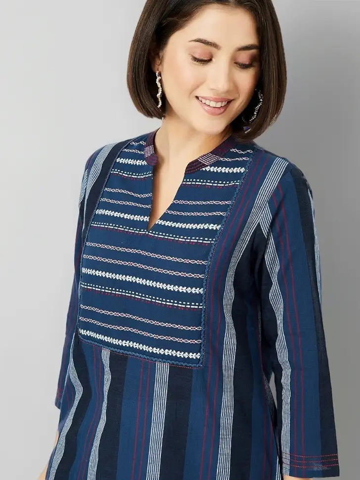 Blue Striped Straight Cotton Kurta