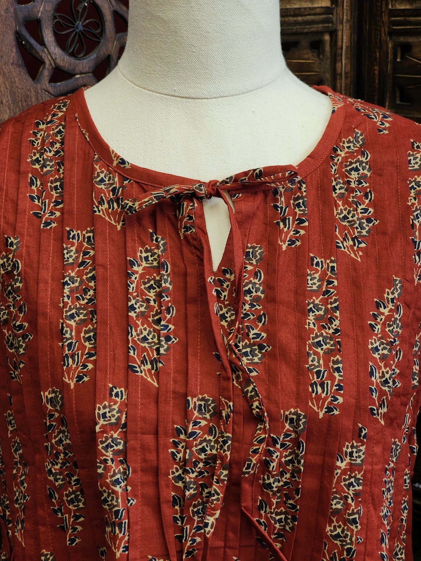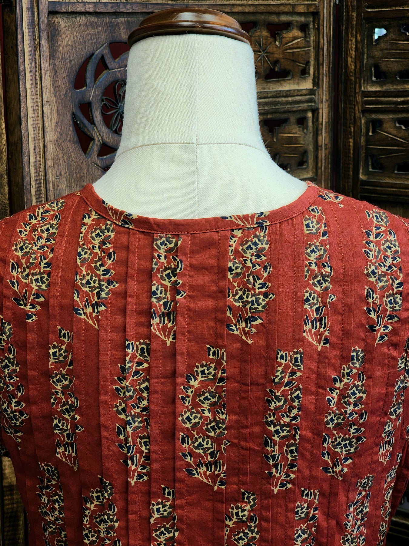Maroon Ethnic Printed Round Neck Cotton Kurti