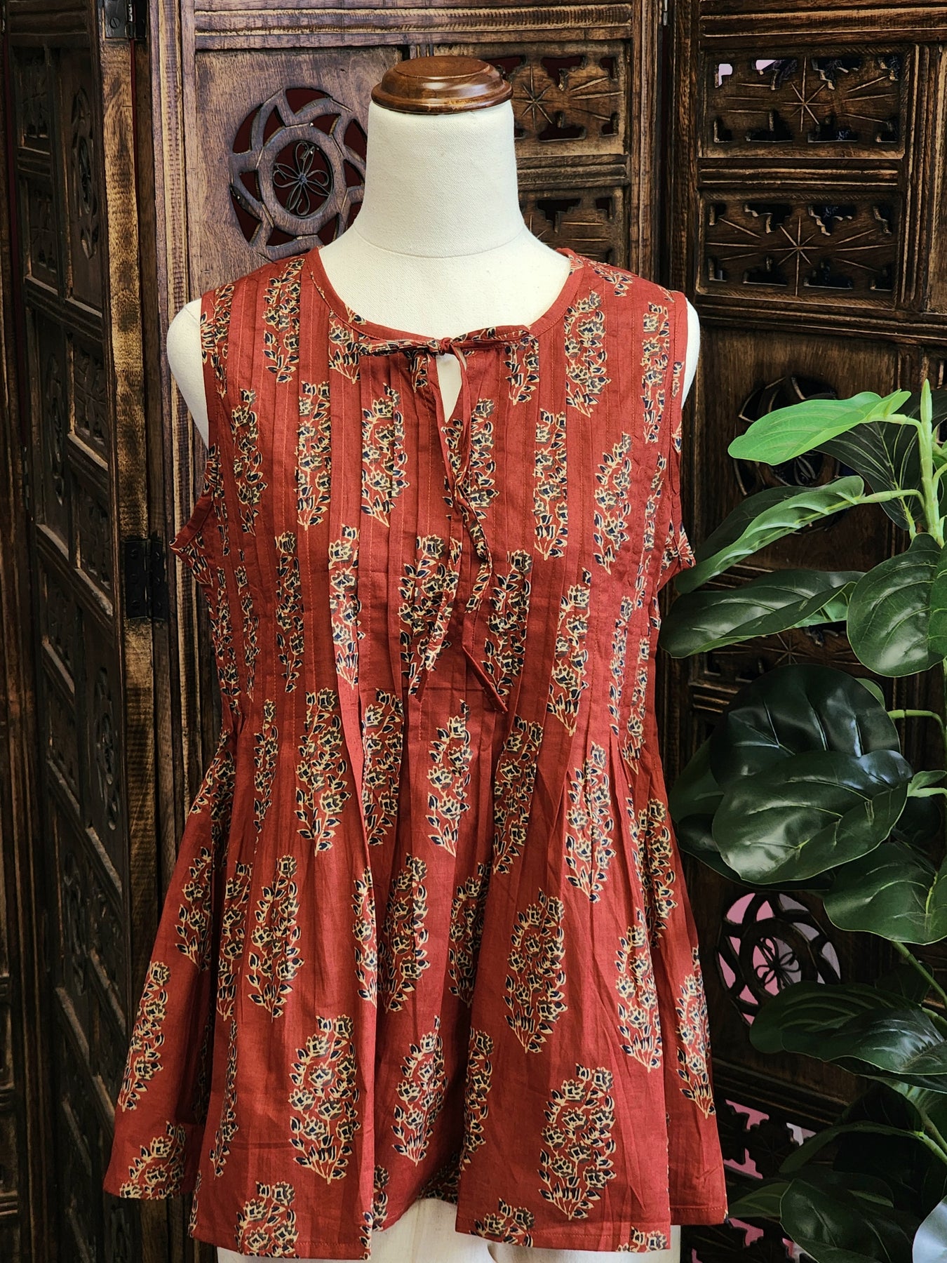 Maroon Sleeveless Ethnic Printed Straight Kurti