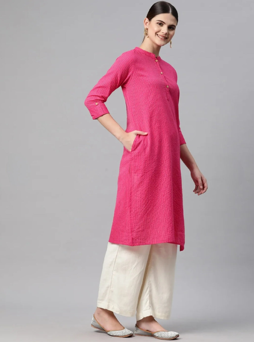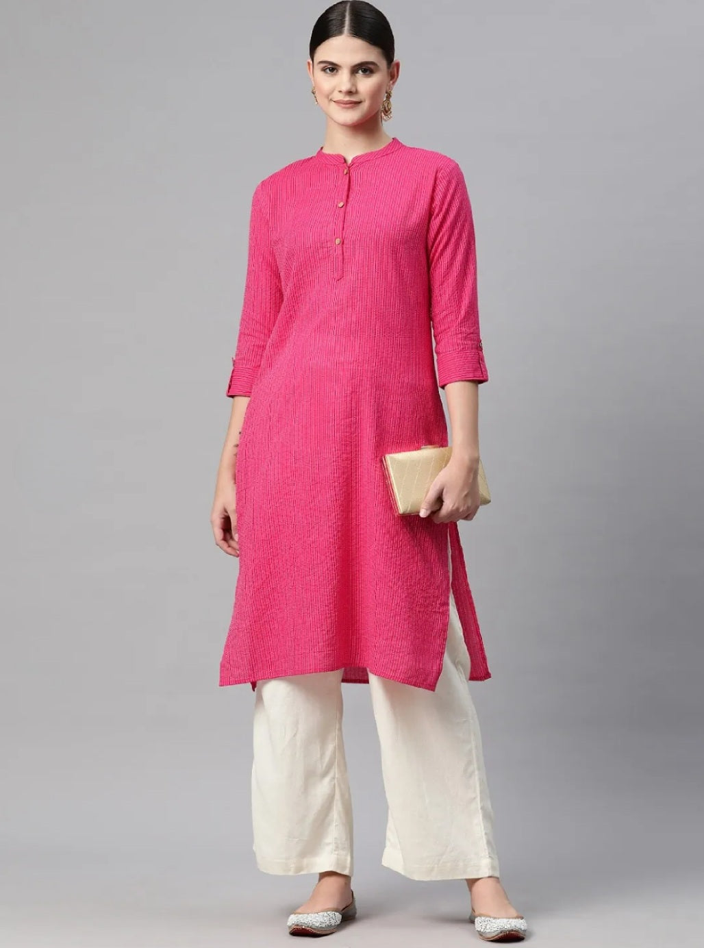 Pink Straight Cotton Kurta