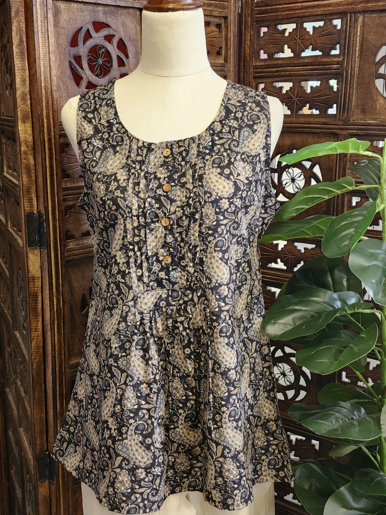 Black Sleeveless Ethnic Printed Straight Kurti