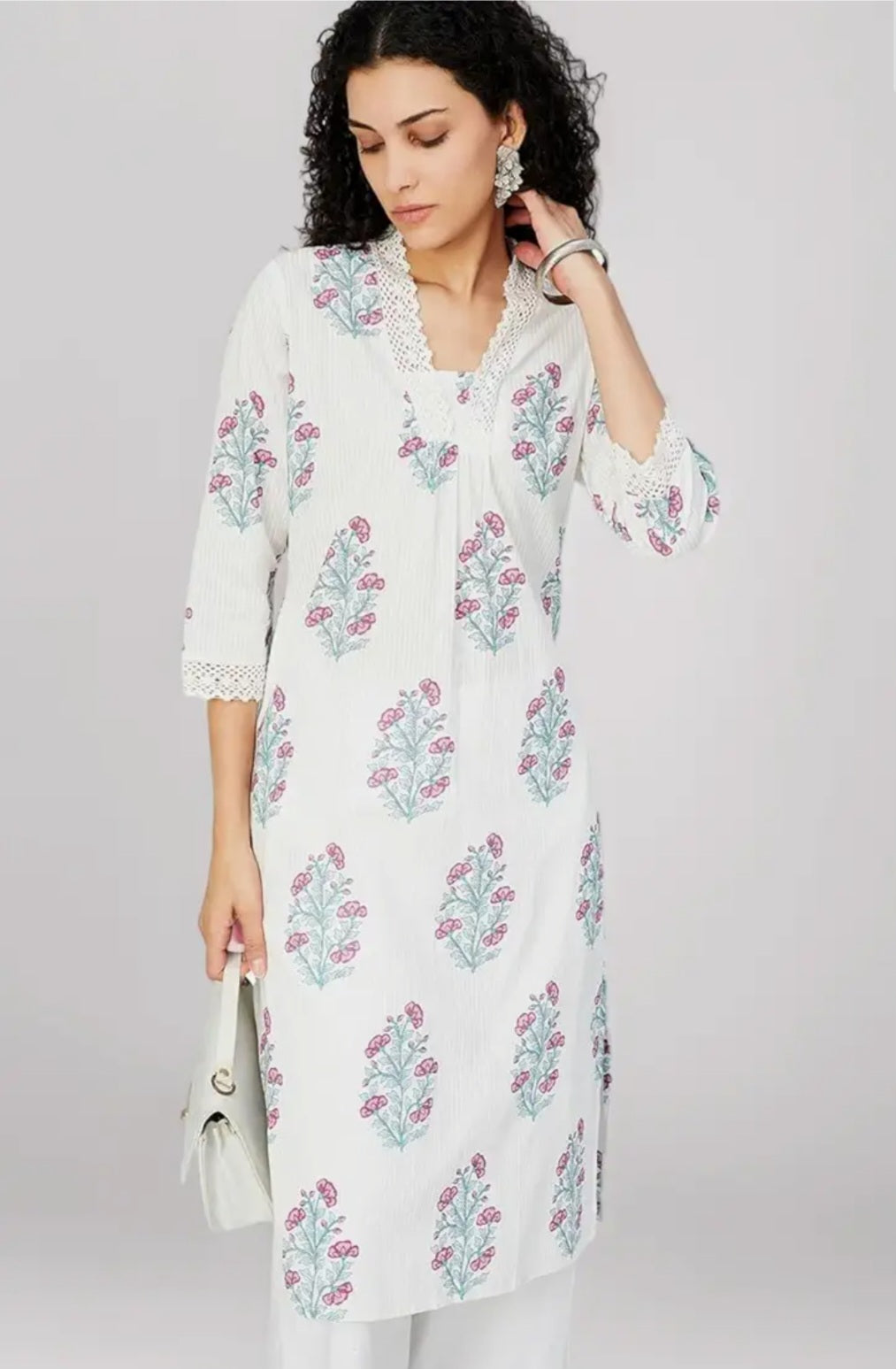 Off- White Floral Straight Kurta