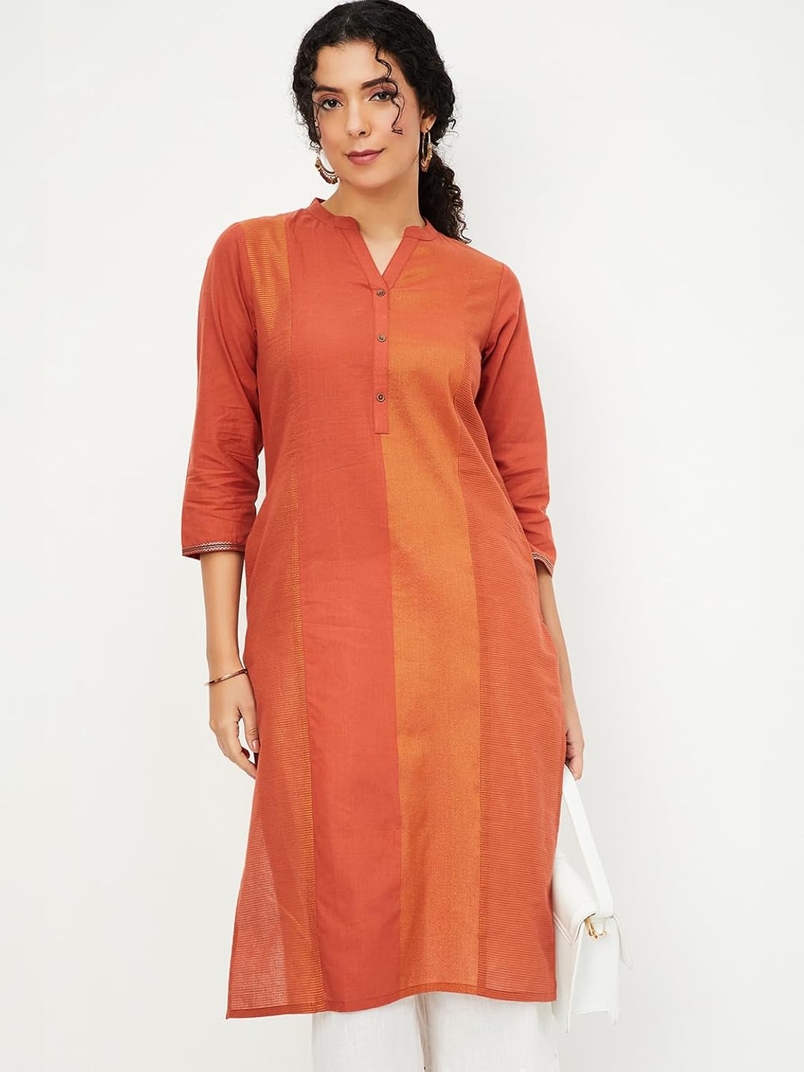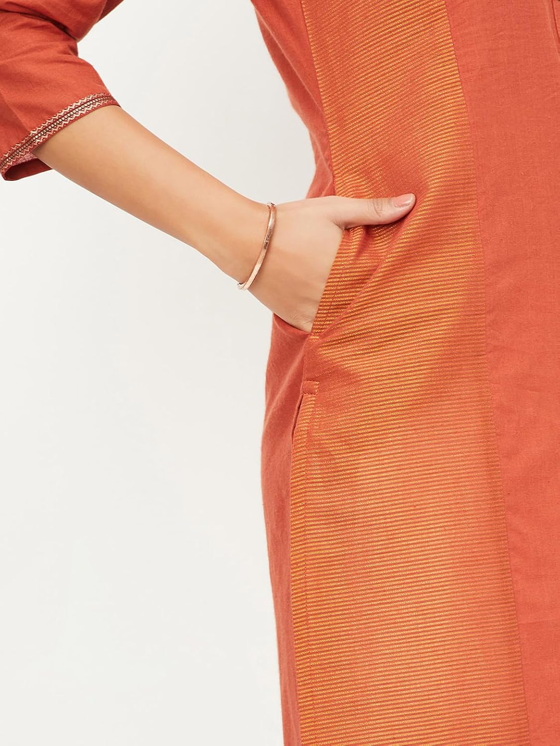 Orange Colour Block Straight Cotton Kurta