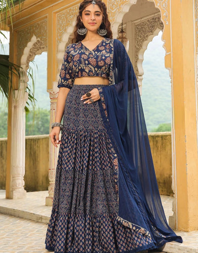 Embellished Foil Printed Tiered Lehenga Choli Set