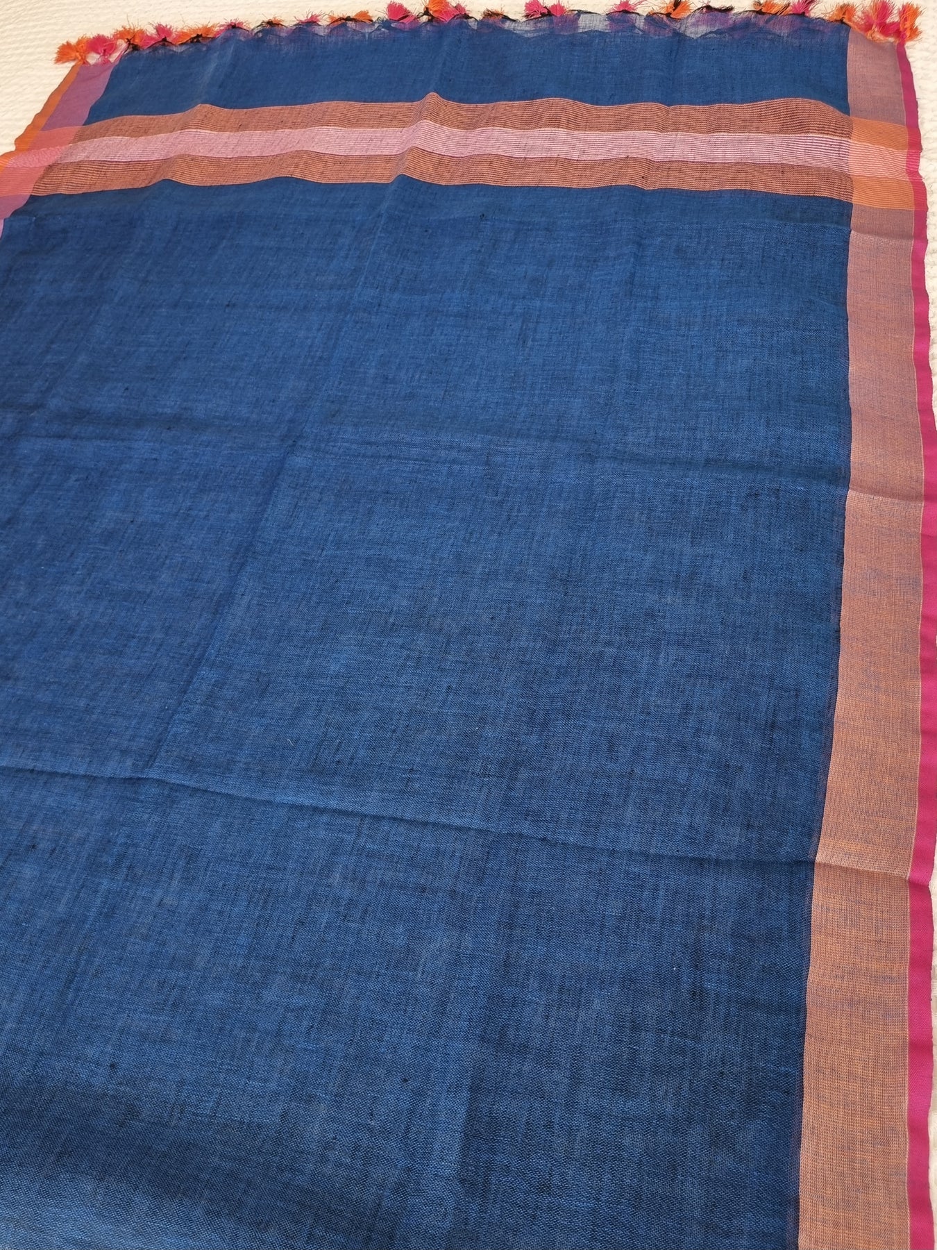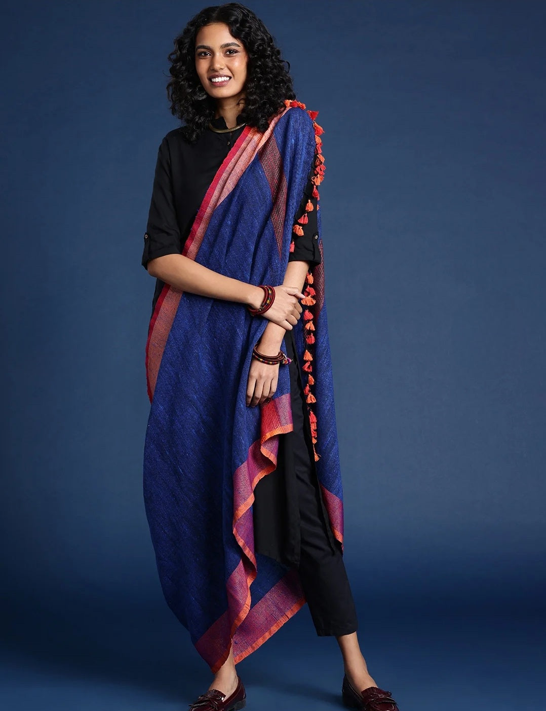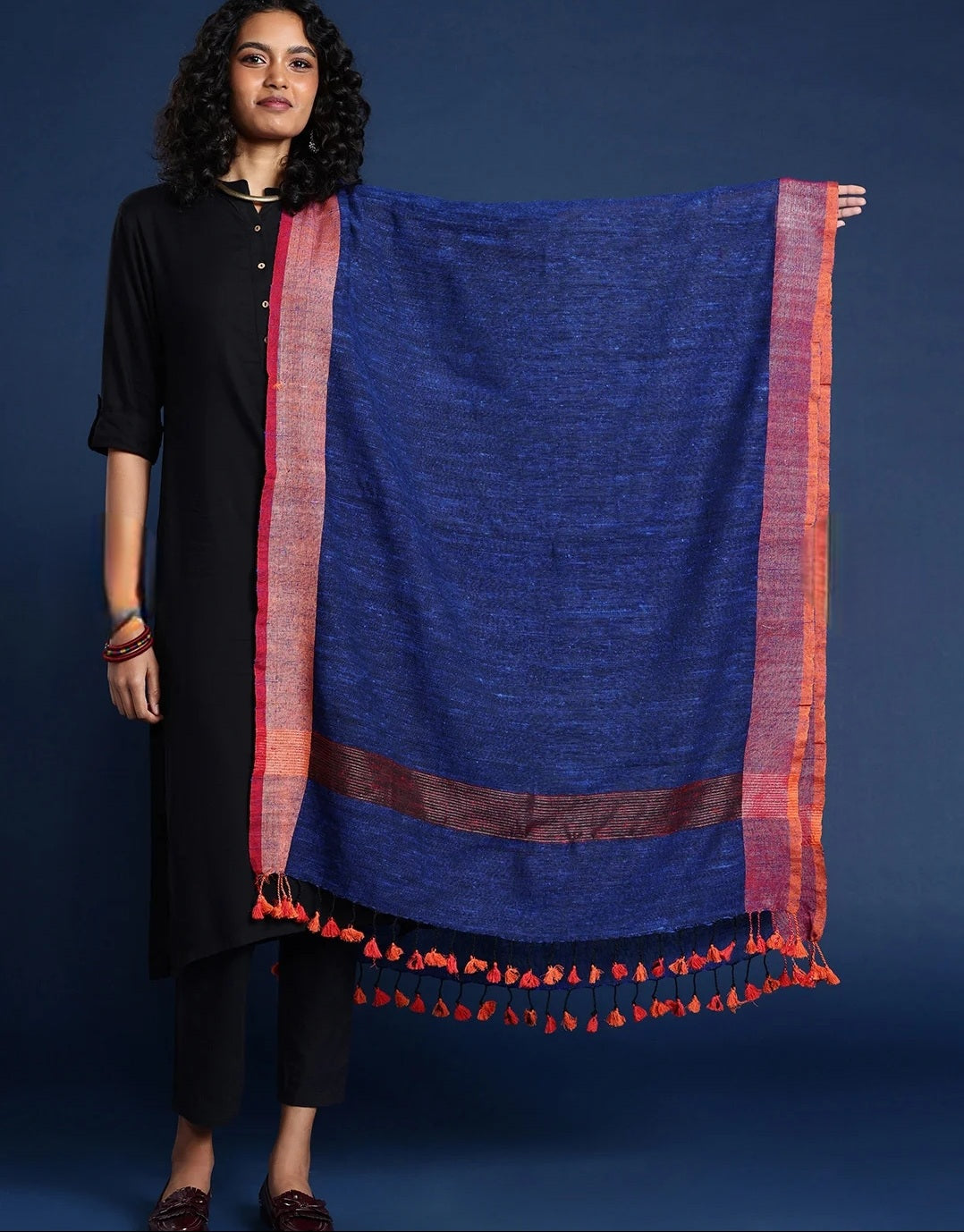 Blue Solid Dupatta with Gangs Jamuna Borders