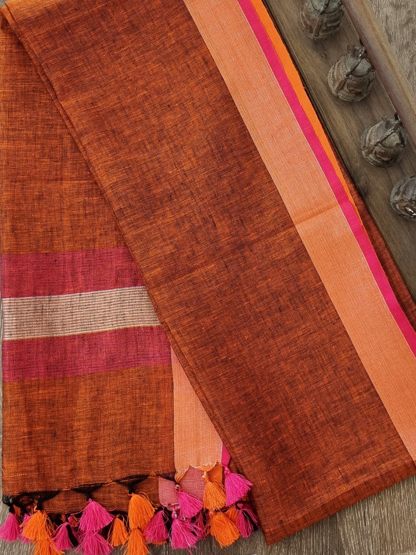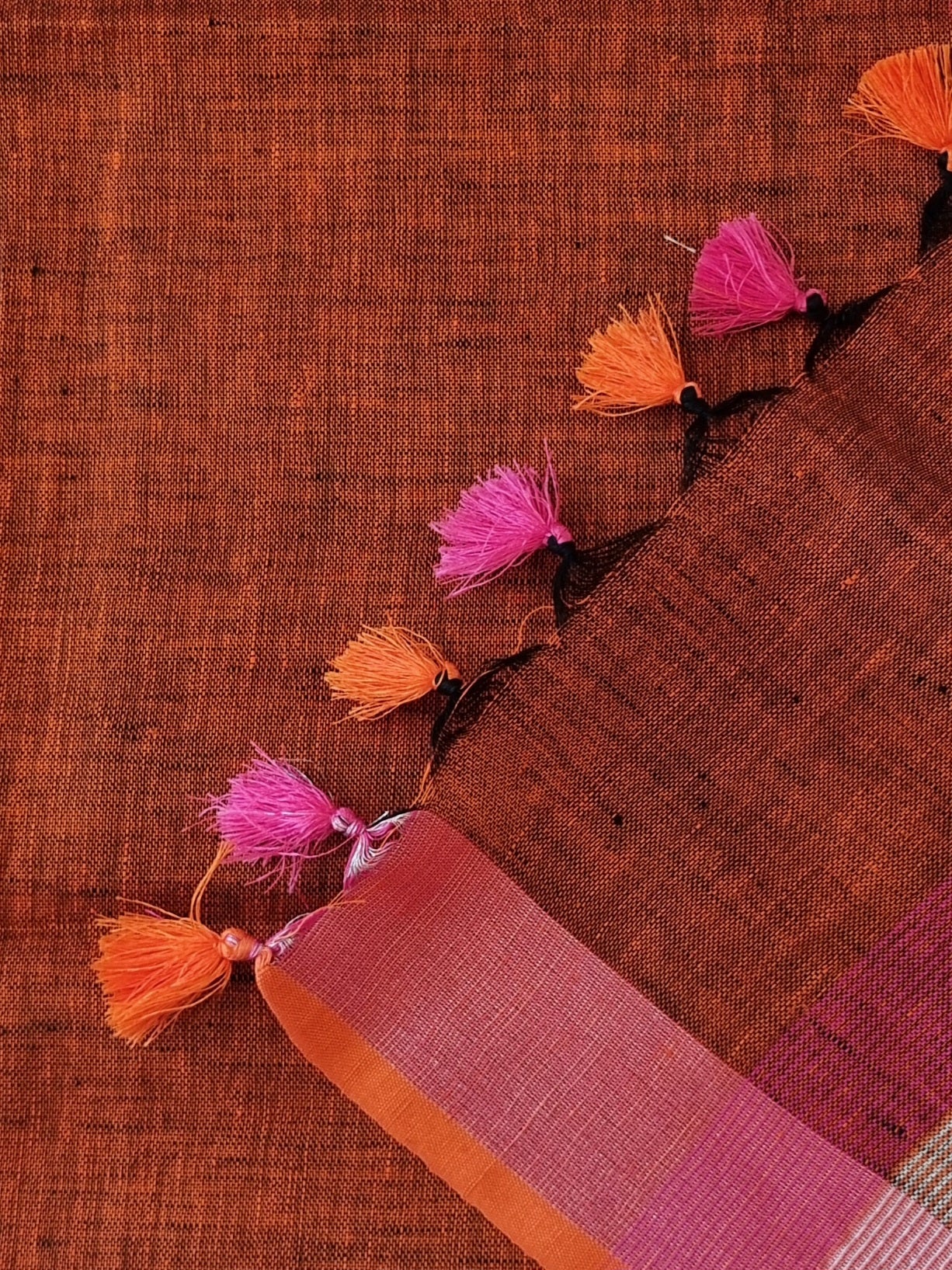 Rust Orange Solid Dupatta with Gangs Jamuna Borders