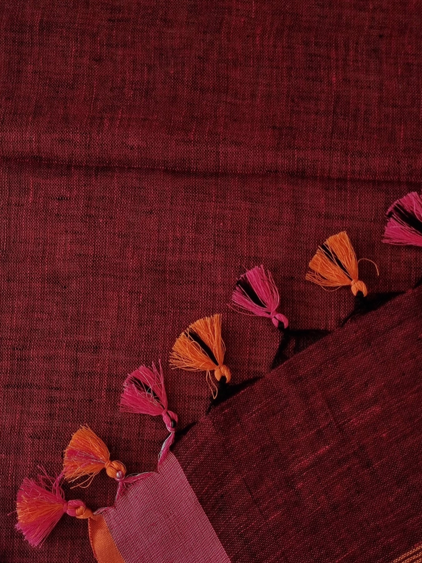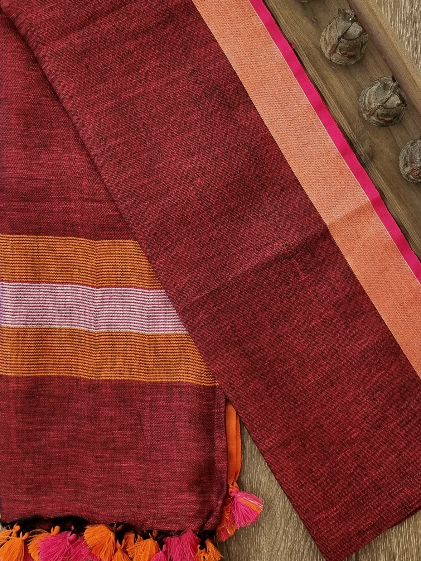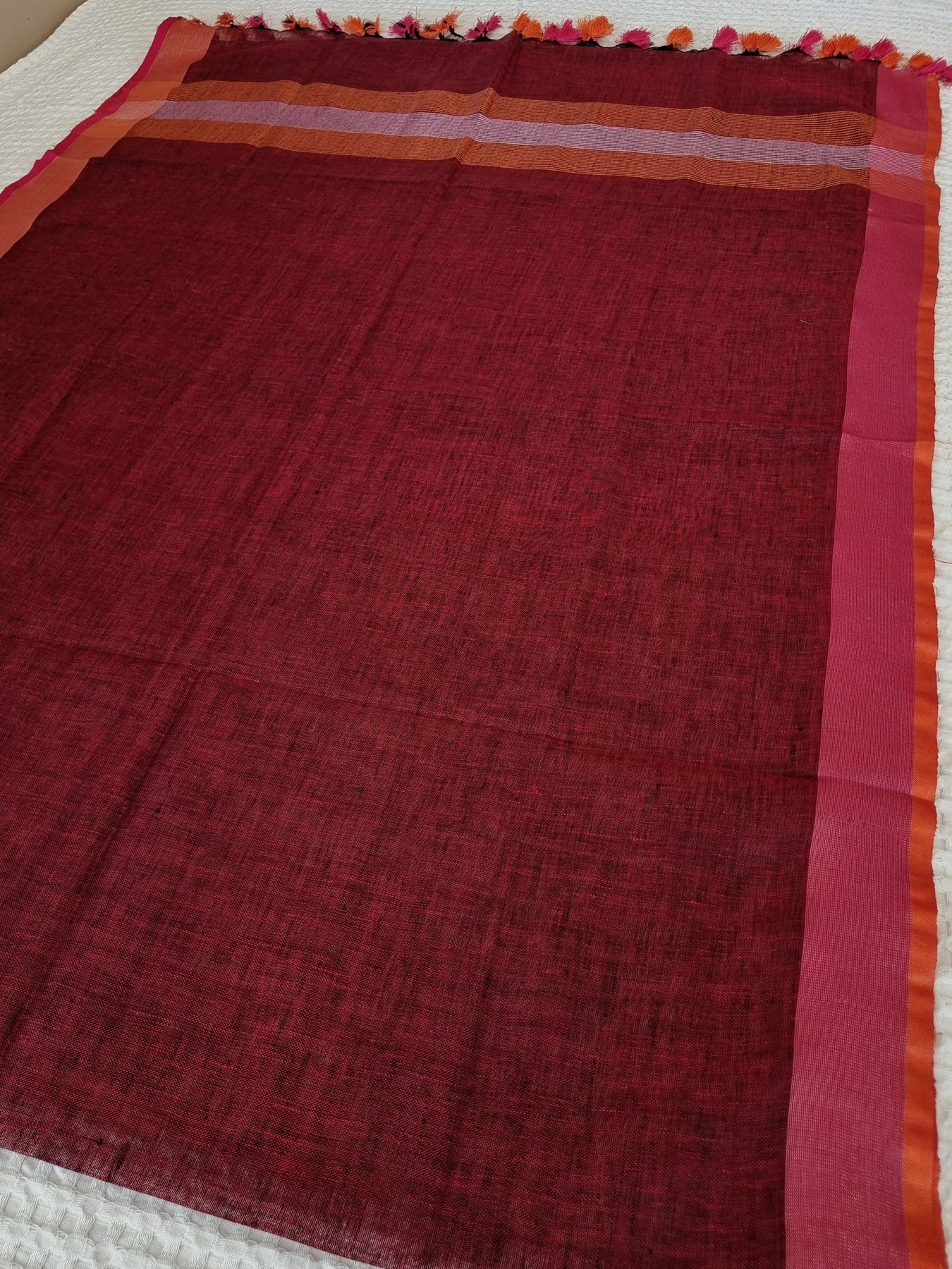 Maroon Solid Dupatta with Ganga Jamuna Borders