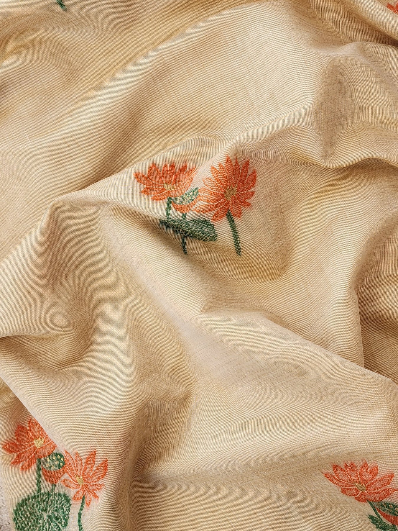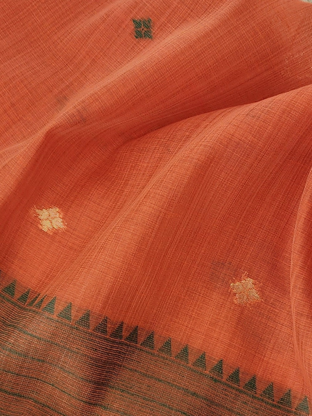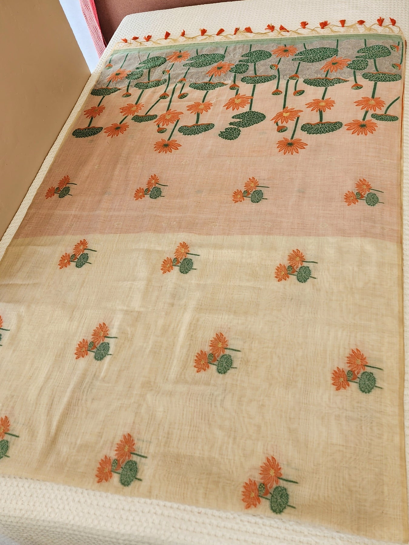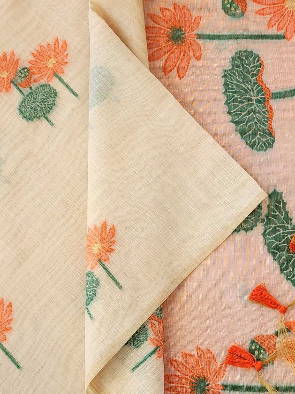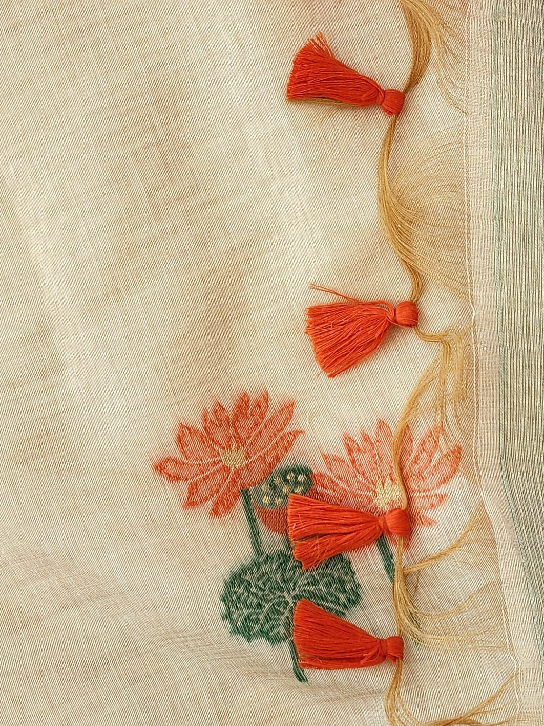 Linen Cotton Saree, with woven designs on the body and pallu, beautifully finished with tassels