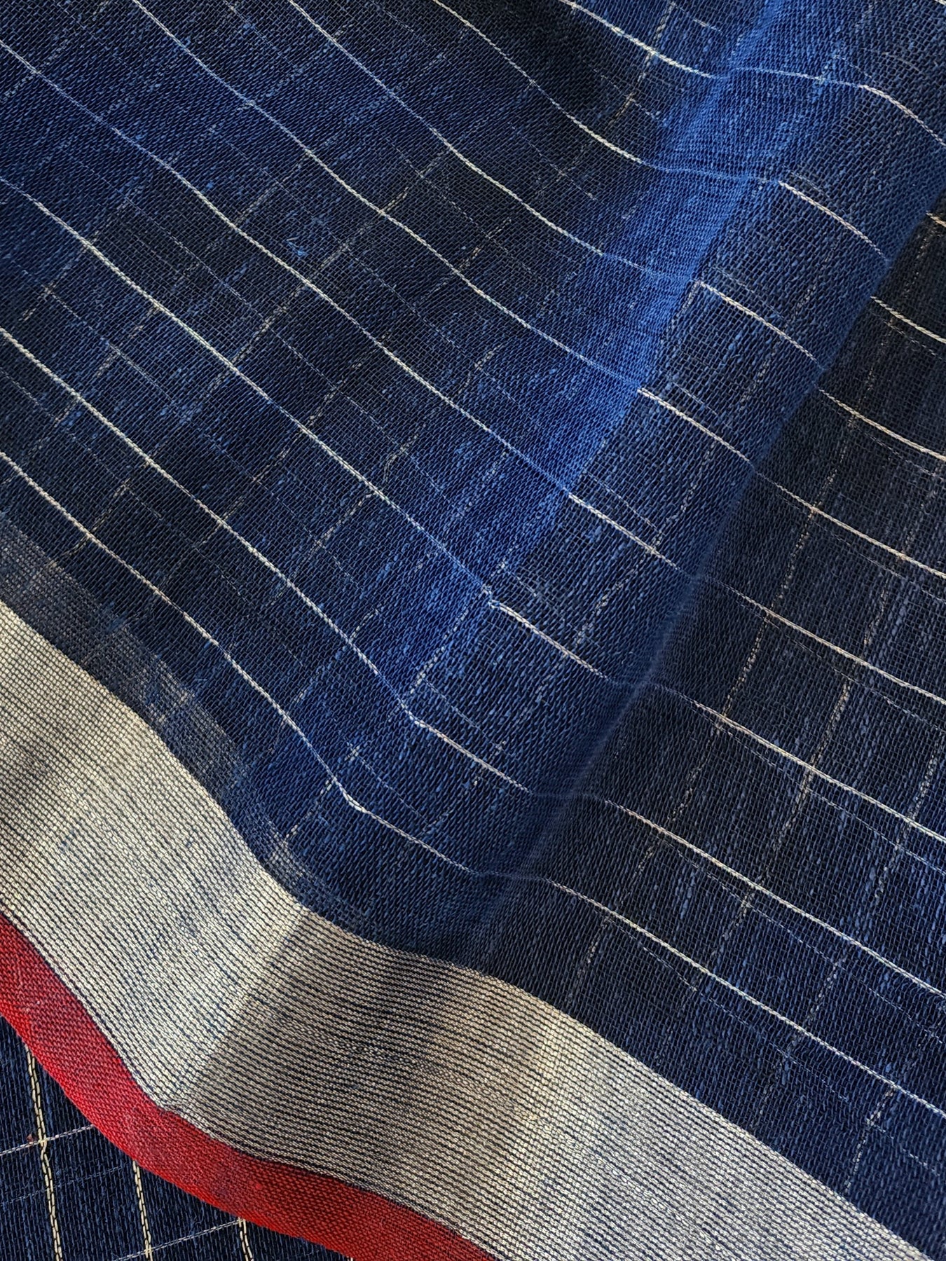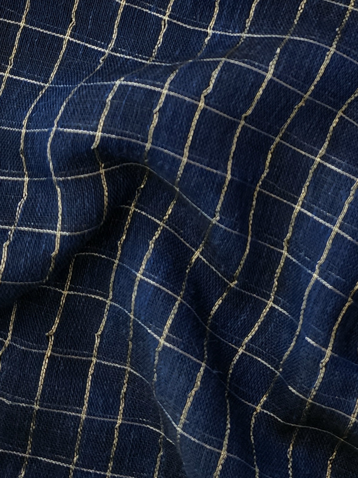 Navy Blue Handloom Checked Linen Saree with Silver Borders