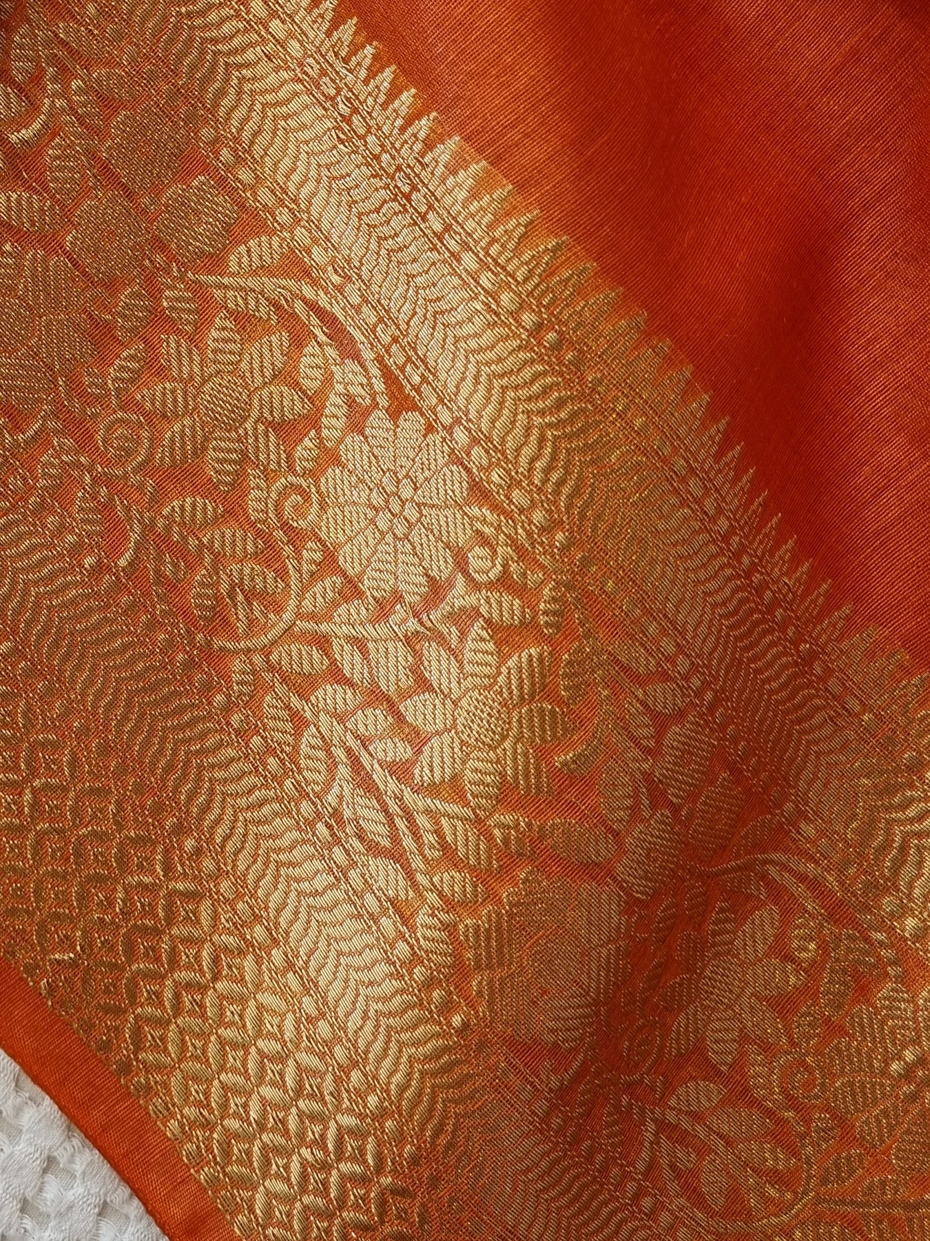 Handloom Orange Silk Linen Saree with Banarassi borders and Pallu