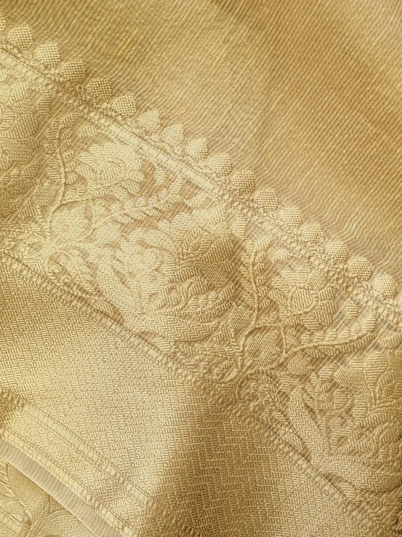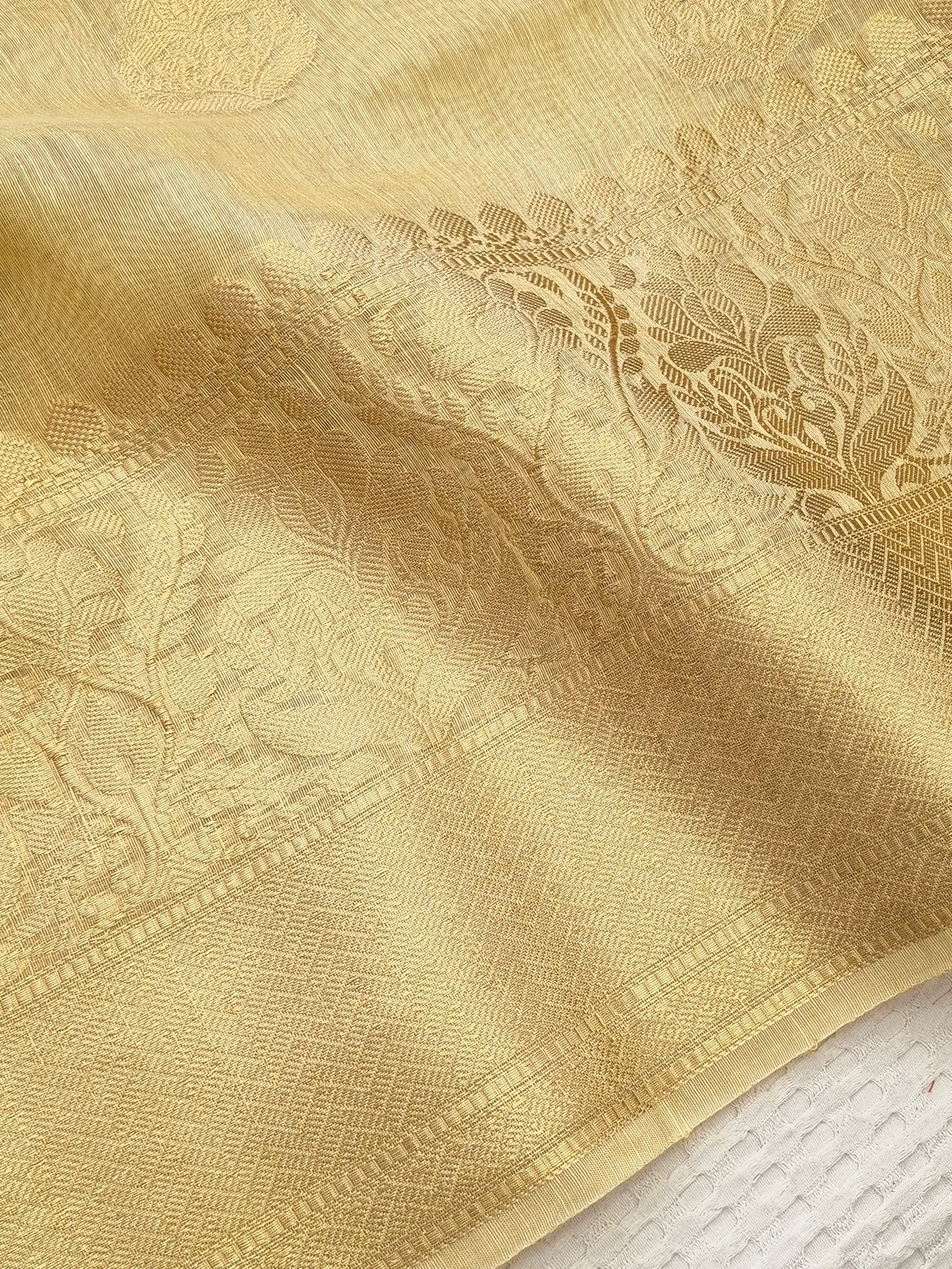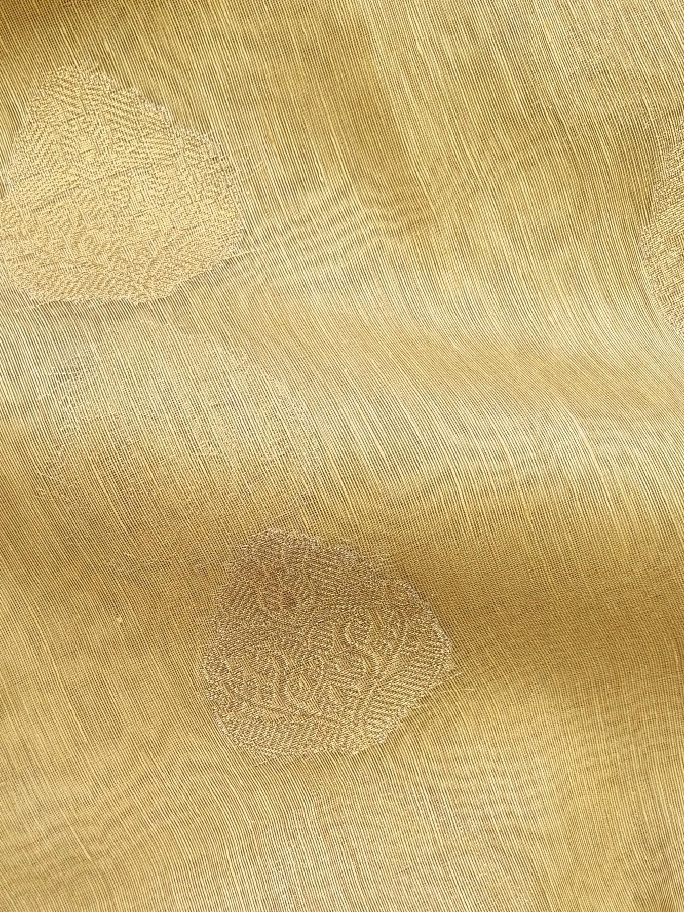 • Handloom Gold Silk Linen Saree with Banarasi borders and Pallu