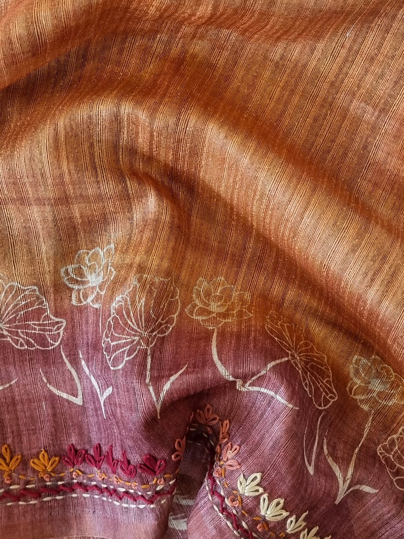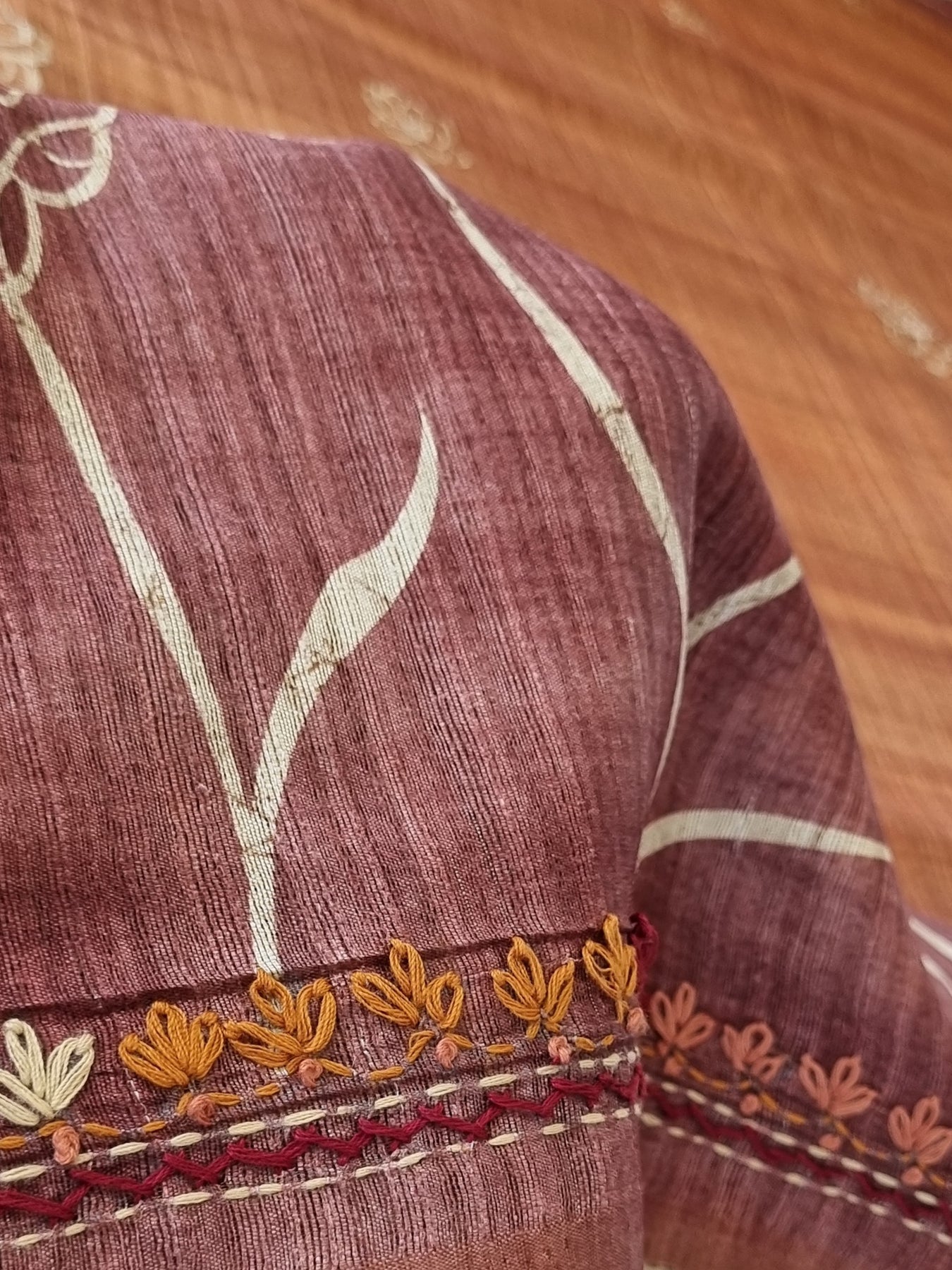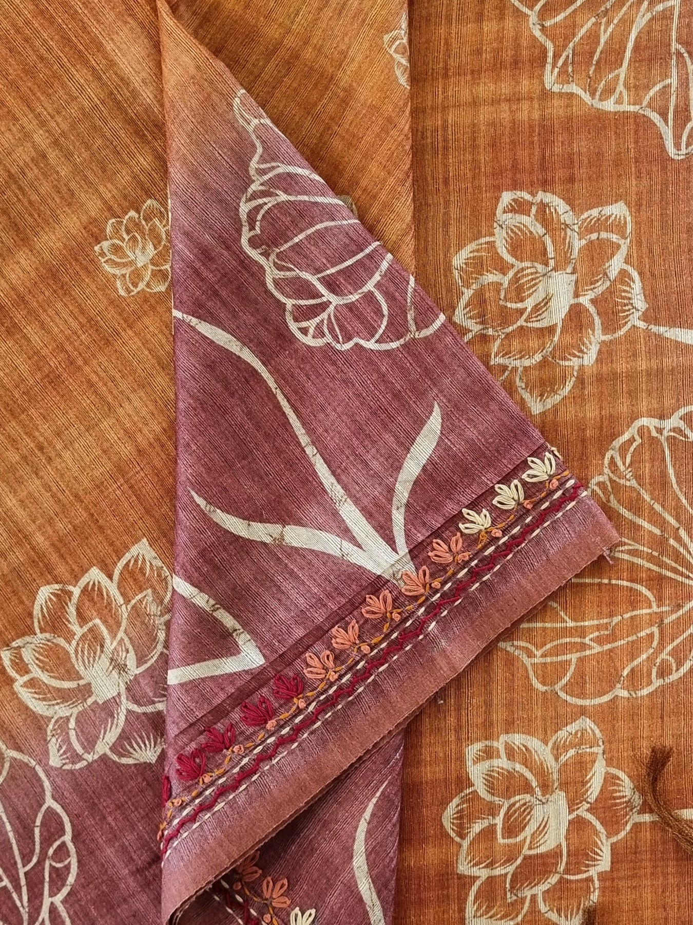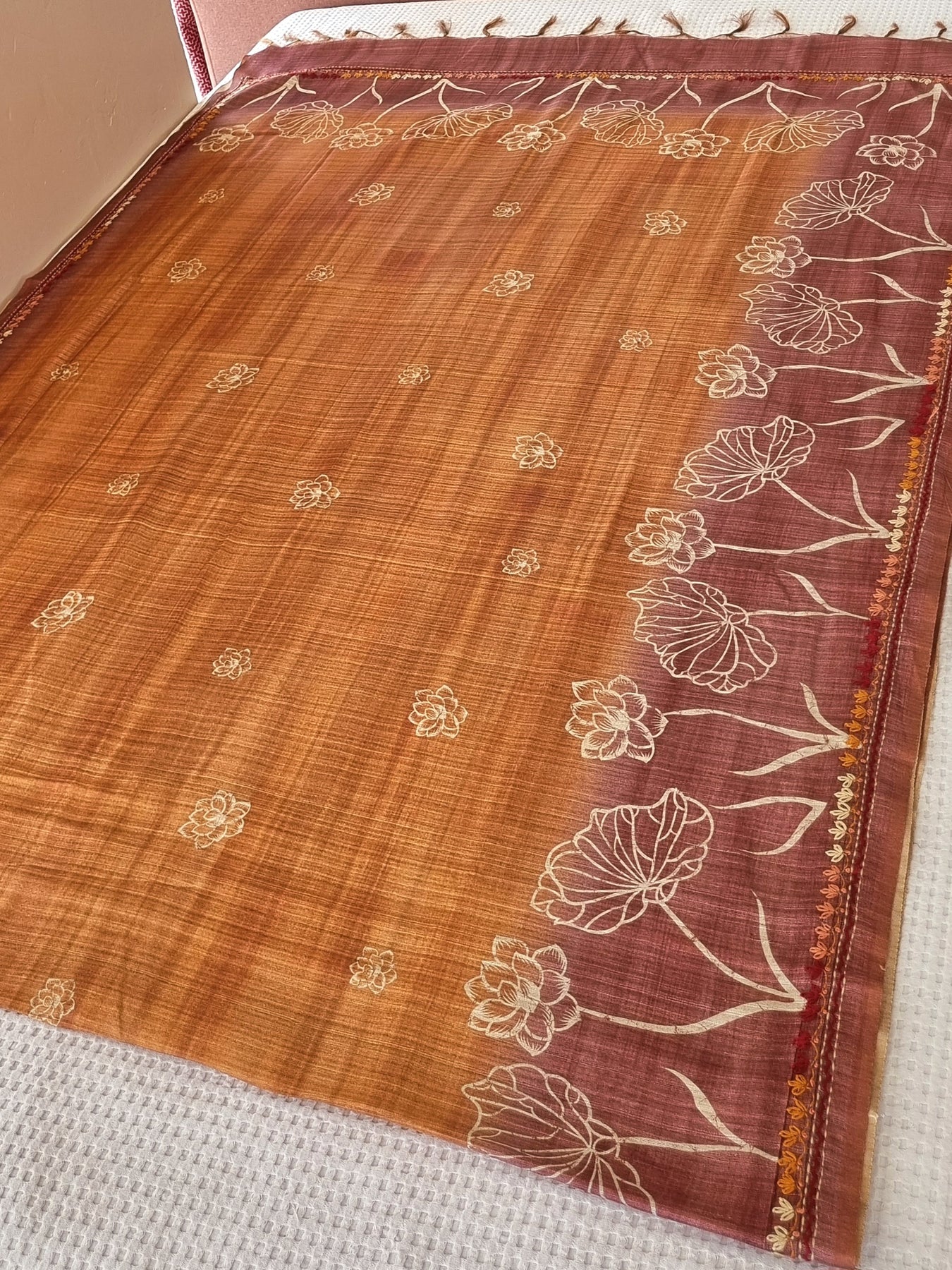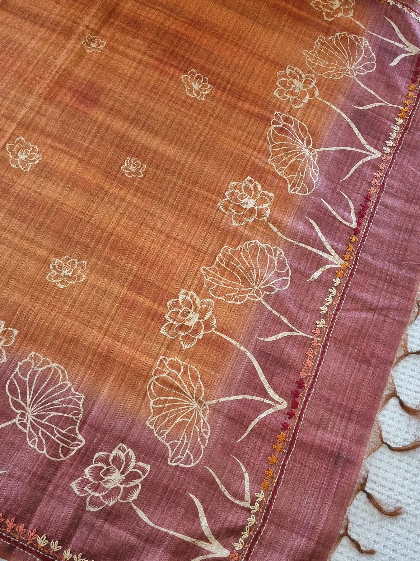 Linen Cotton Saree with Embroidery and a pallu beautifully finished with tassels