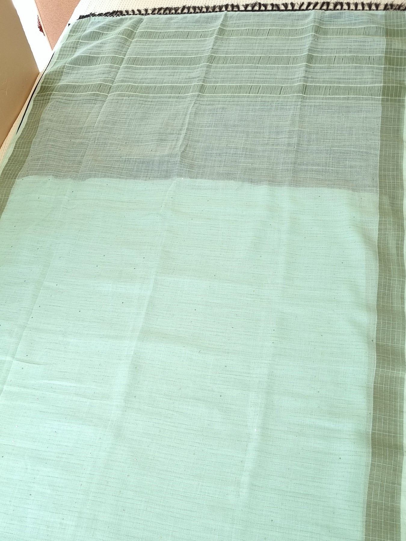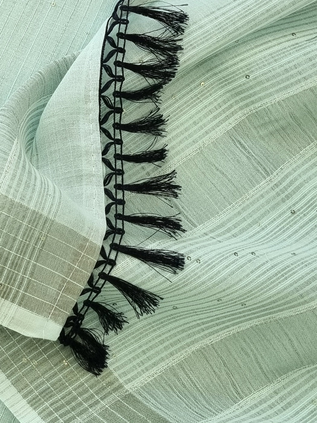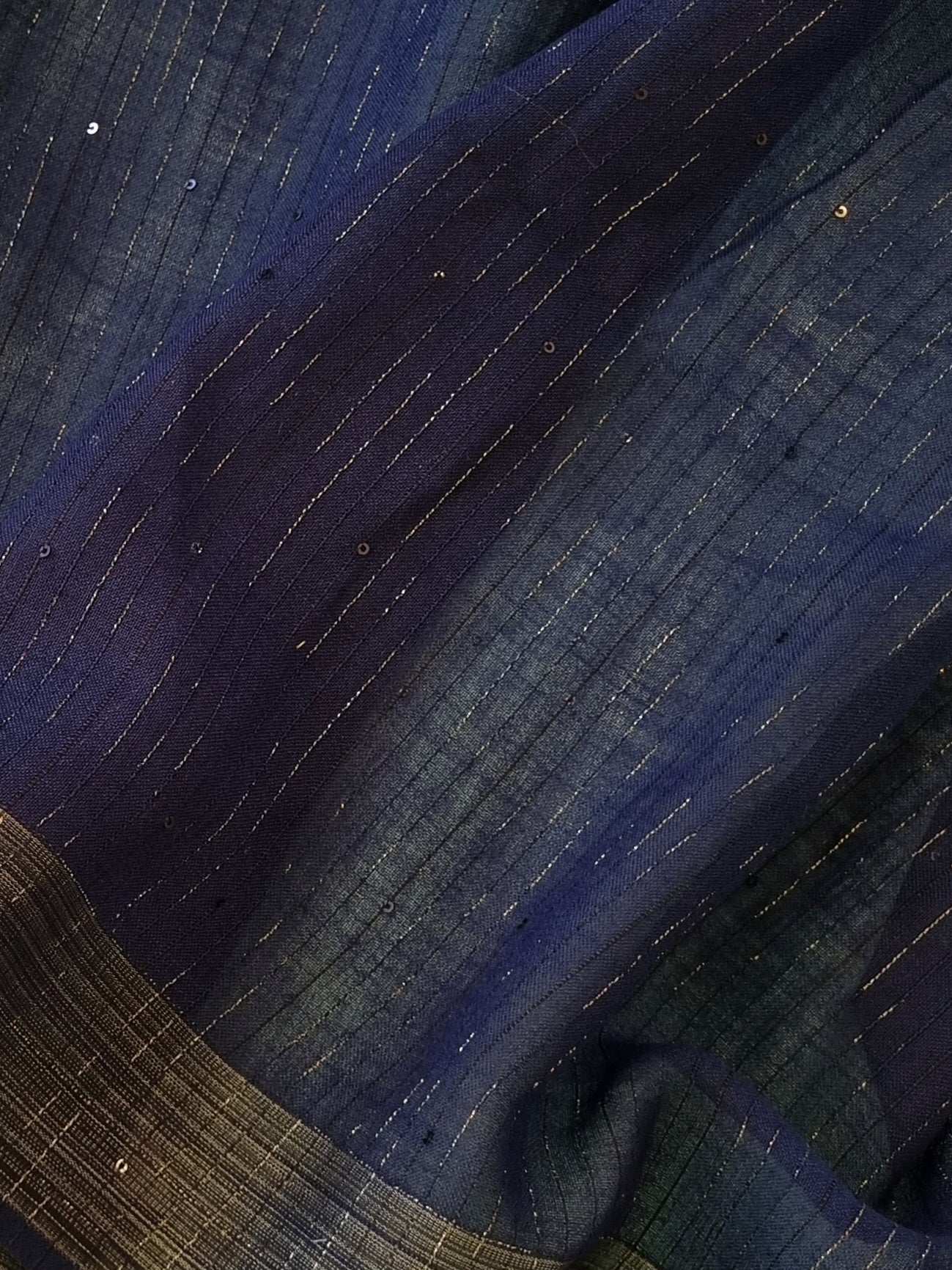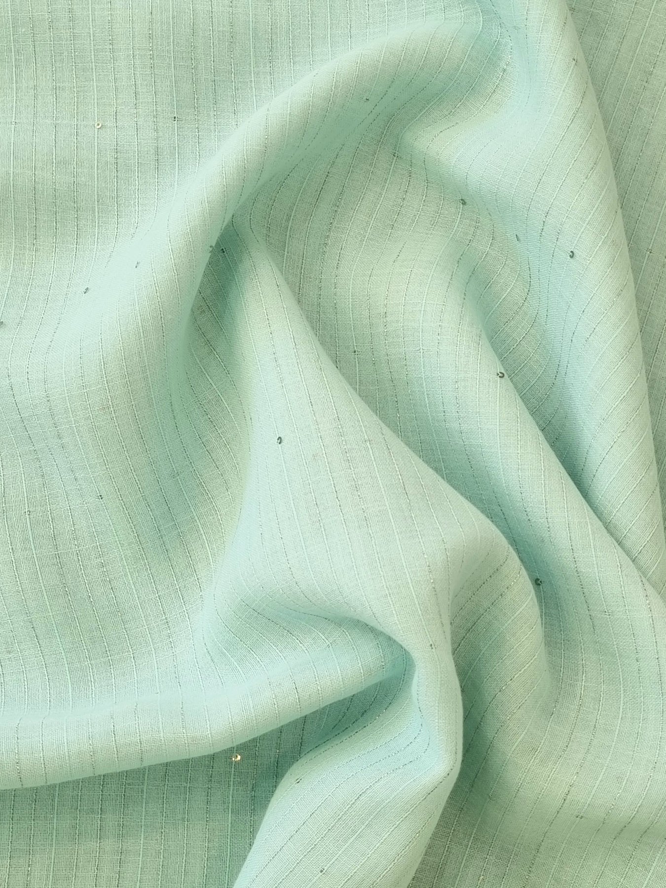 Light Blue Linen Cotton Saree with Sequinned work and a contrast blouse