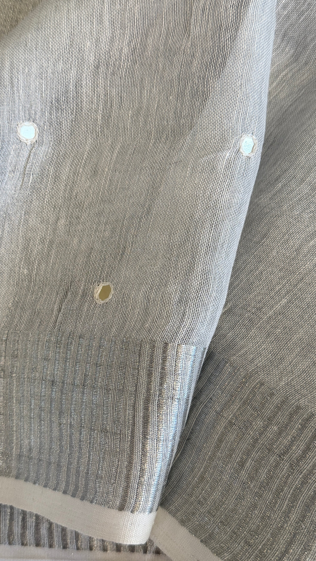 Silver Tissue Linen Saree, beautifully finished with tassels