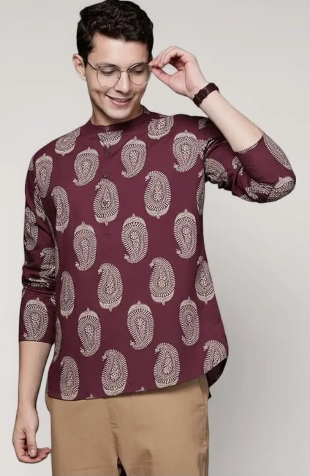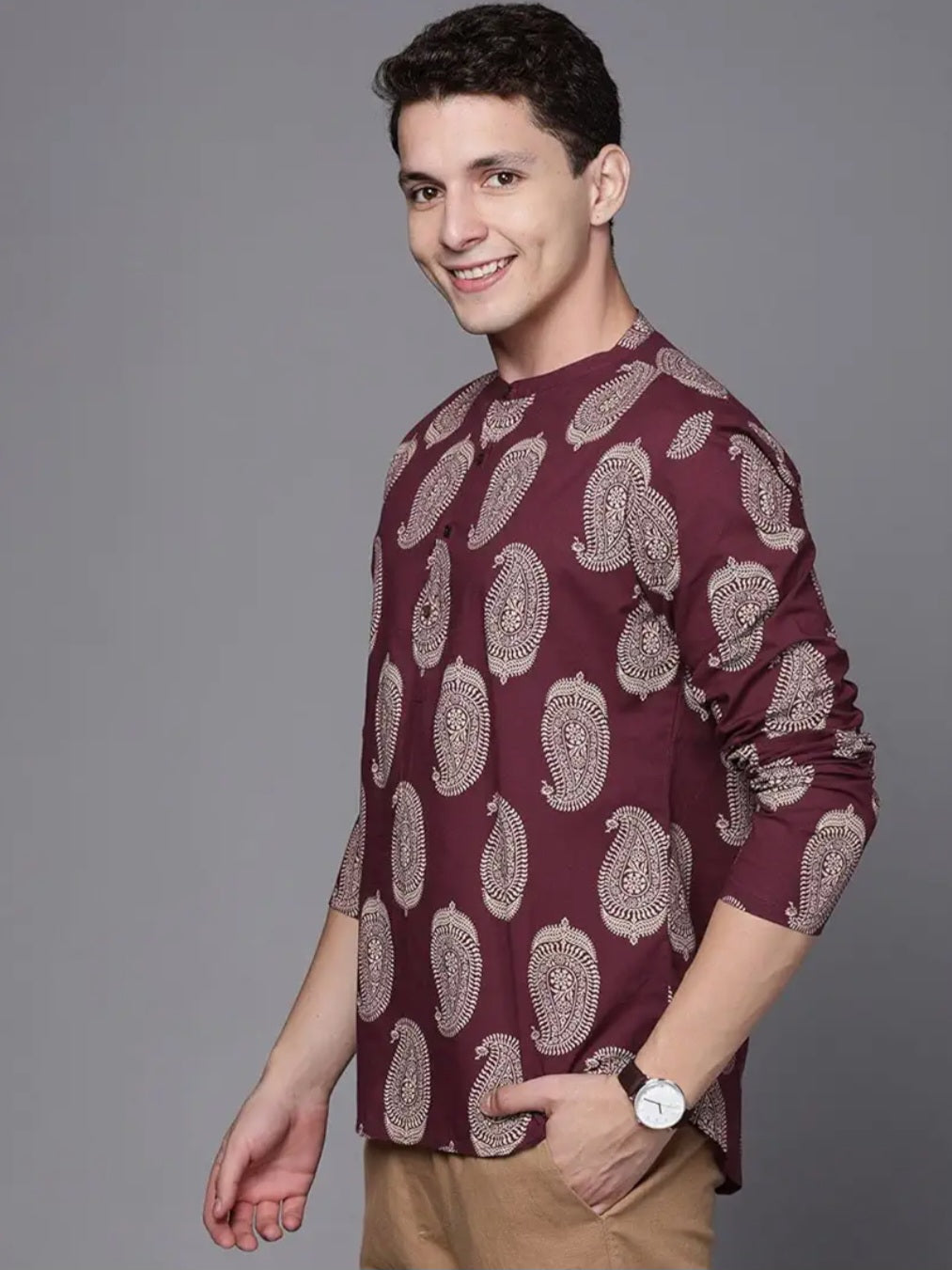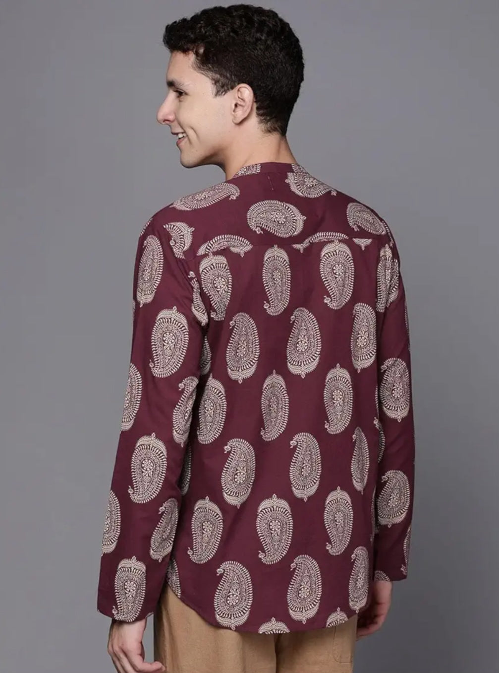 Maroon Printed Short Kurta