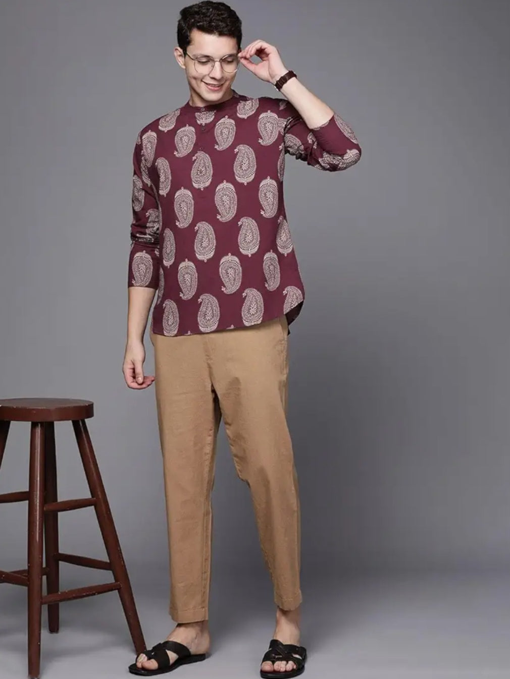 Maroon Printed Festive Mens Kurta