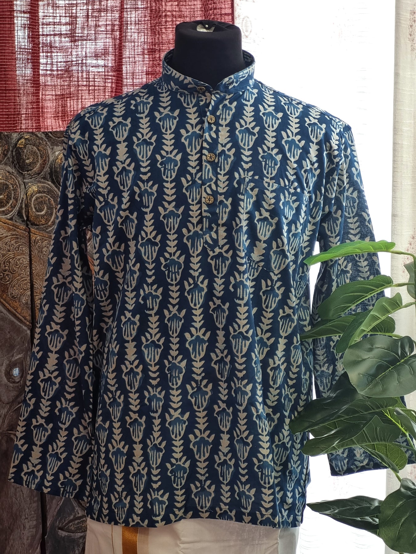 Indigo Print Cotton Short Kurta