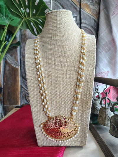 Impon & Pearl Necklace with a Lotus Pathakkam