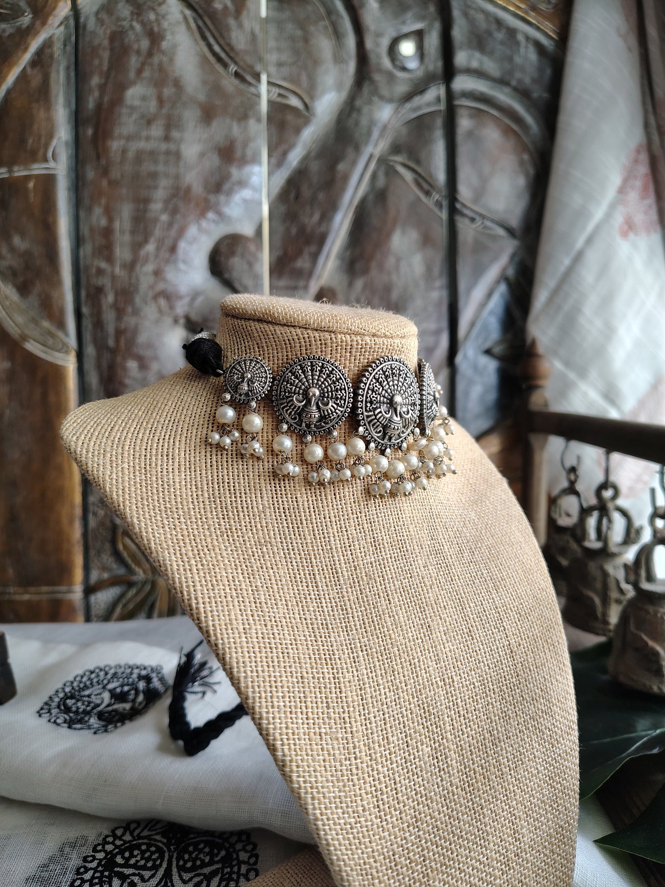 [{"id":47710889443560,"title":"Default Title","option1":"Default Title","option2":null,"option3":null,"sku":null,"requires_shipping":true,"taxable":true,"featured_image":null,"available":true,"name":"German Silver Choker \u0026 Earrings","public_title":null,"options":["Default Title"],"price":5500,"weight":300,"compare_at_price":null,"inventory_quantity":1,"inventory_management":"shopify","inventory_policy":"deny","barcode":null,"requires_selling_plan":false,"selling_plan_allocations":[]}]
