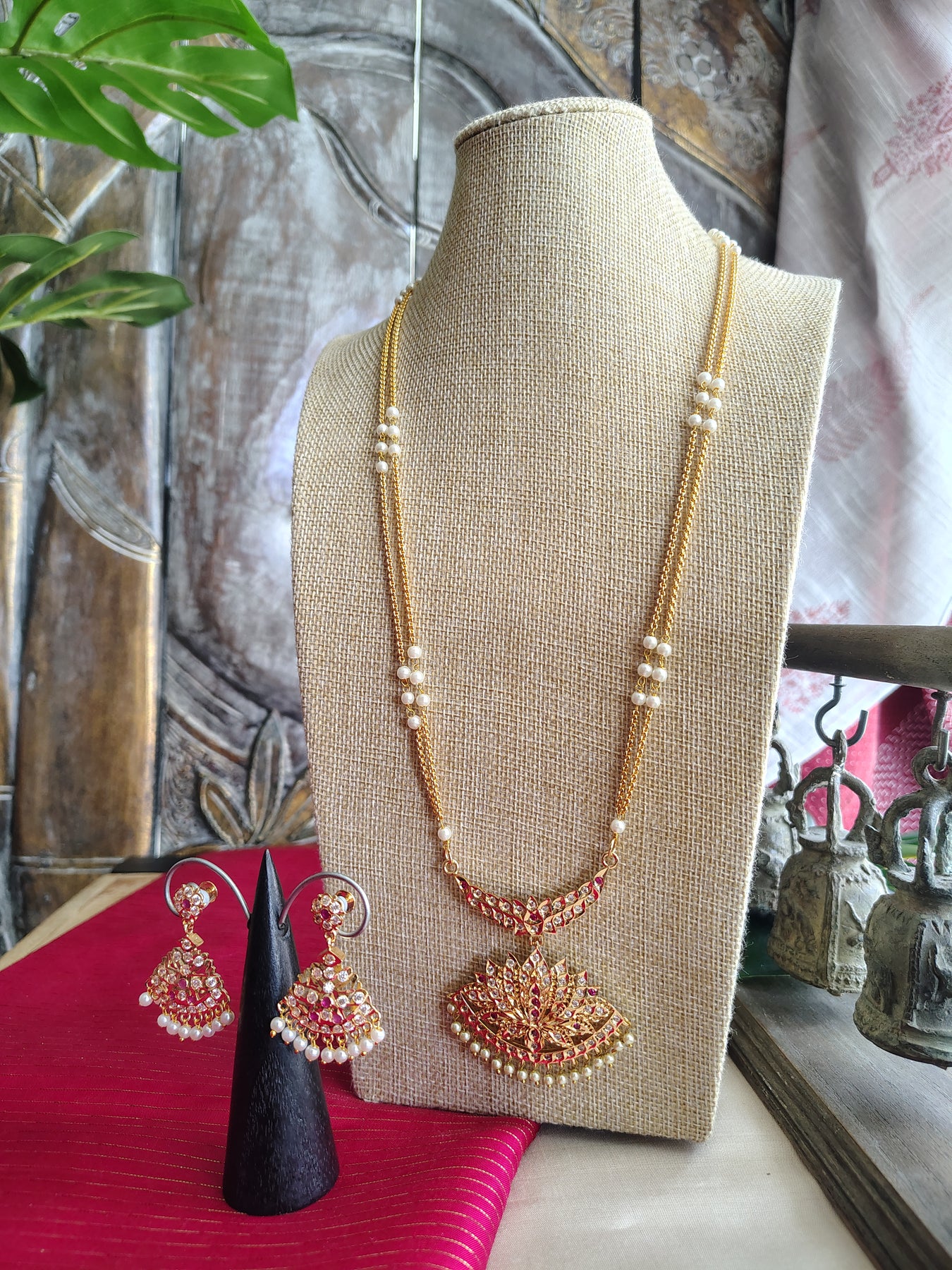 Premium Quality Impon Necklace with a Large Lotus Pathakkam