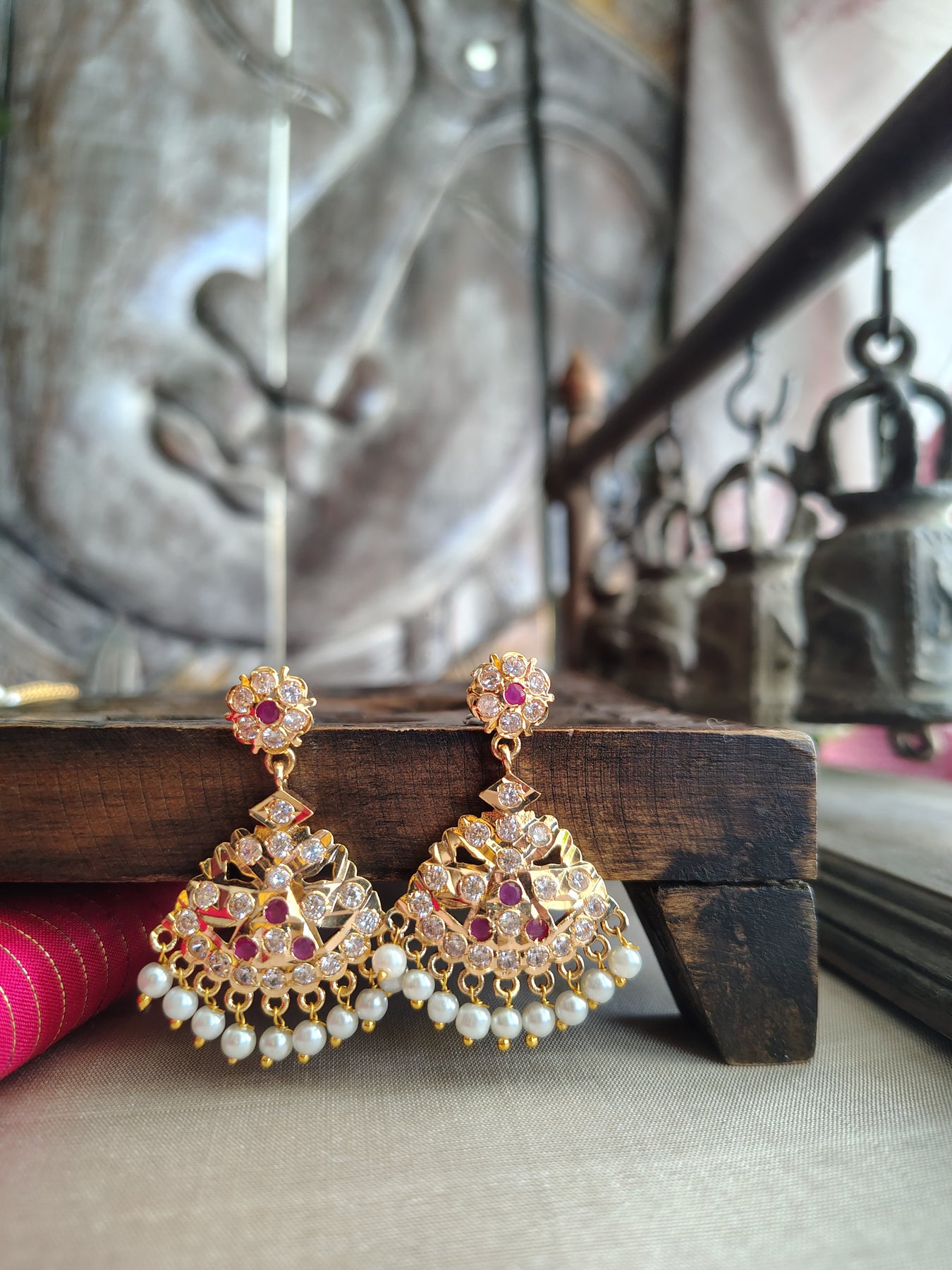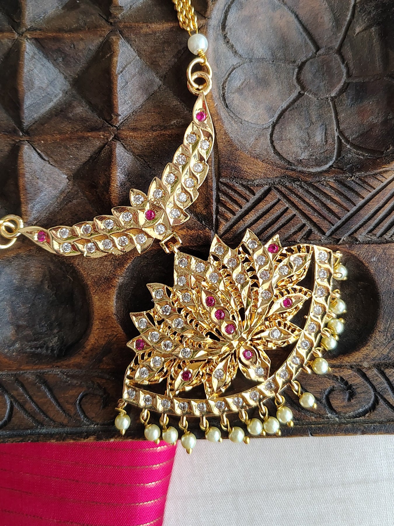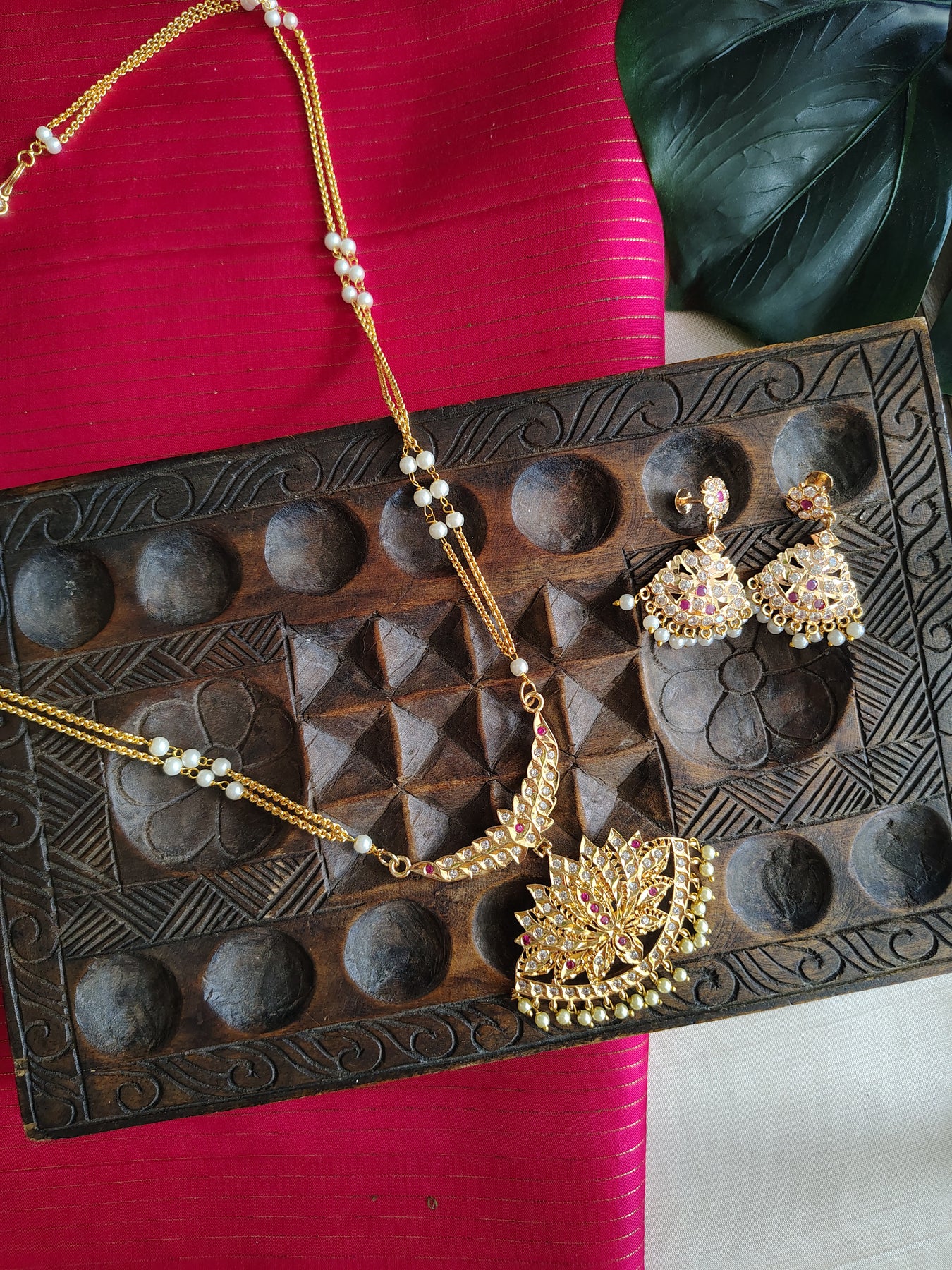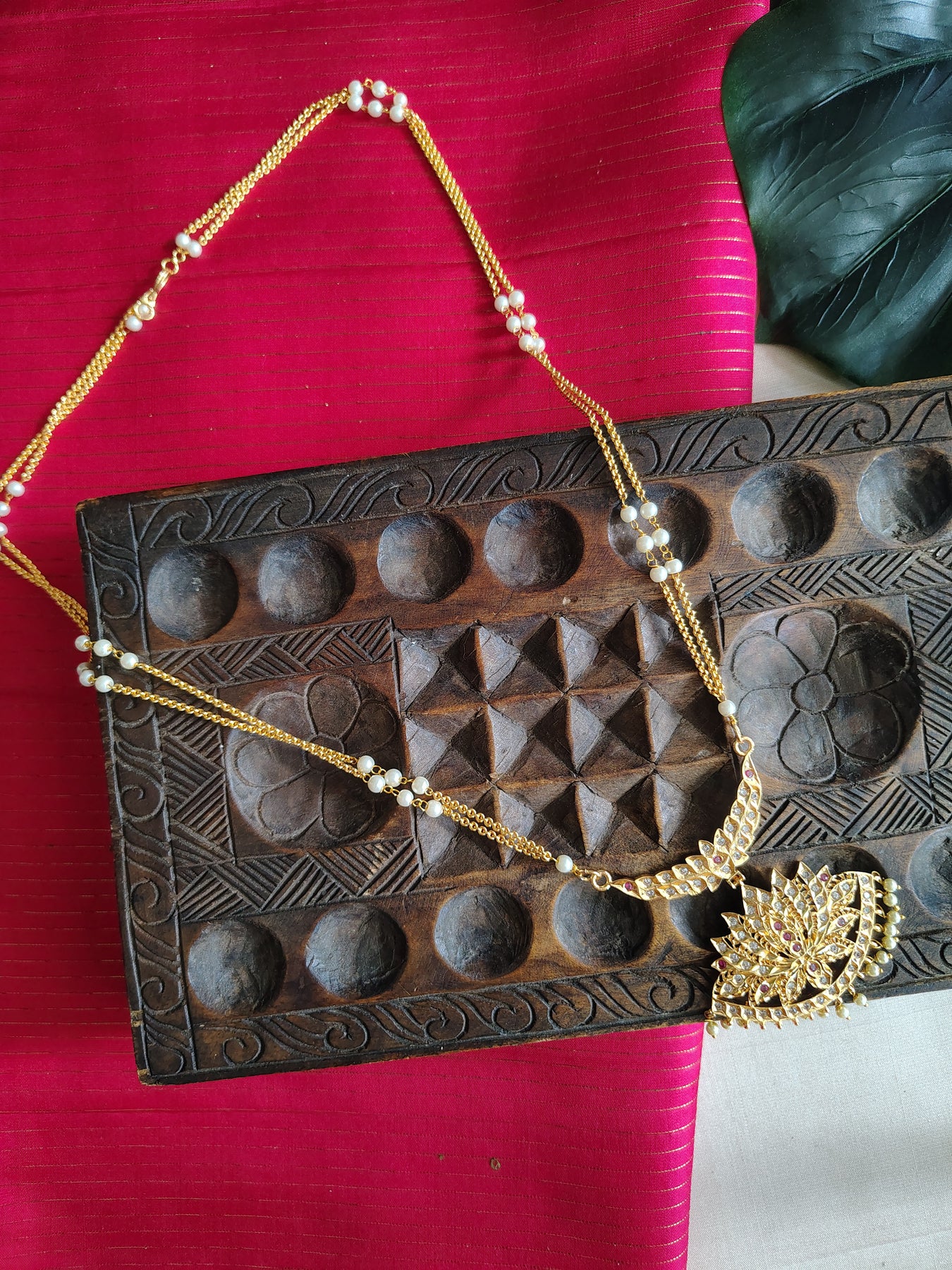 Pearl Necklace, and a Lotus Pthakkam ornated with American Diamond (AD) stones