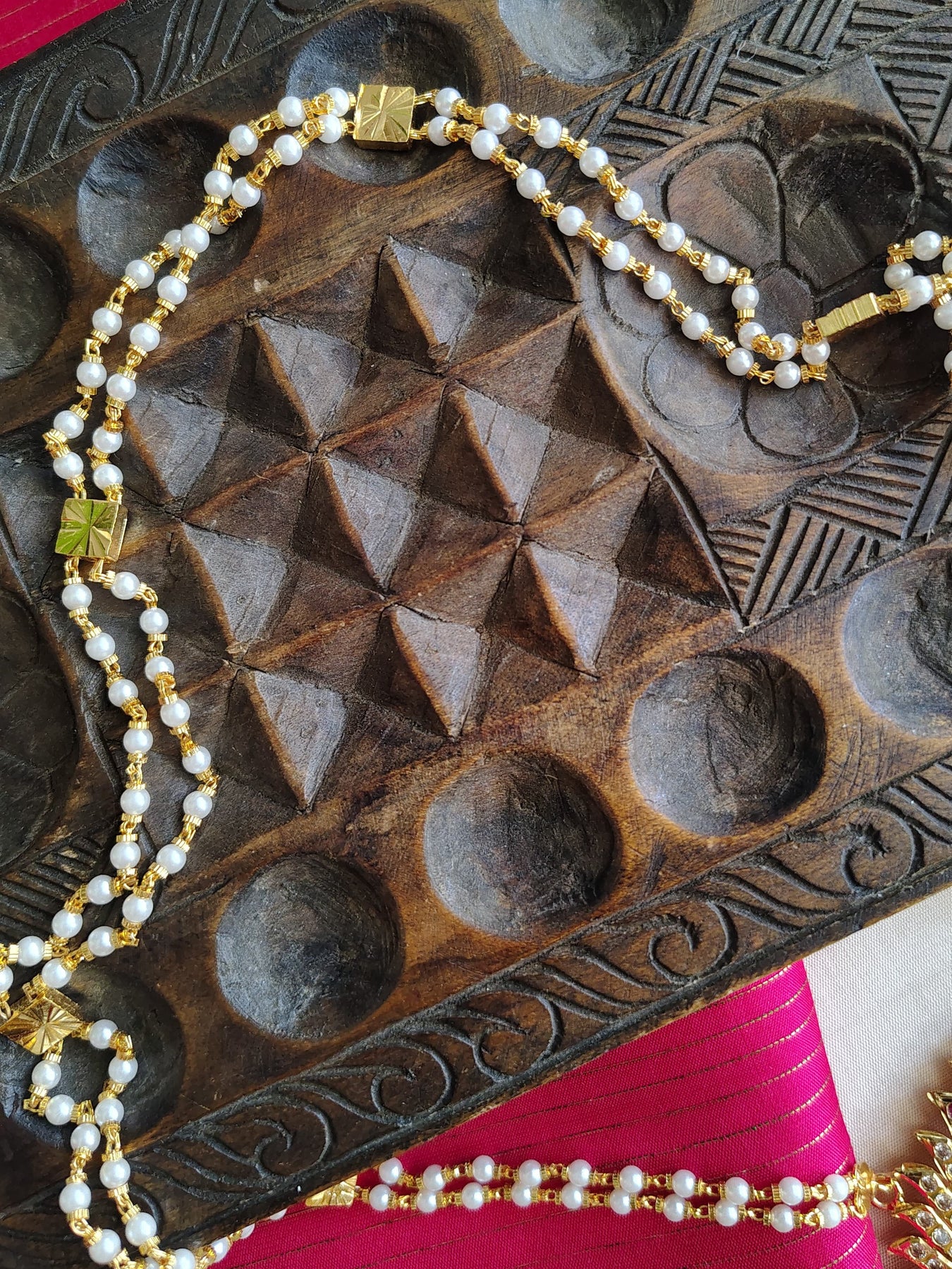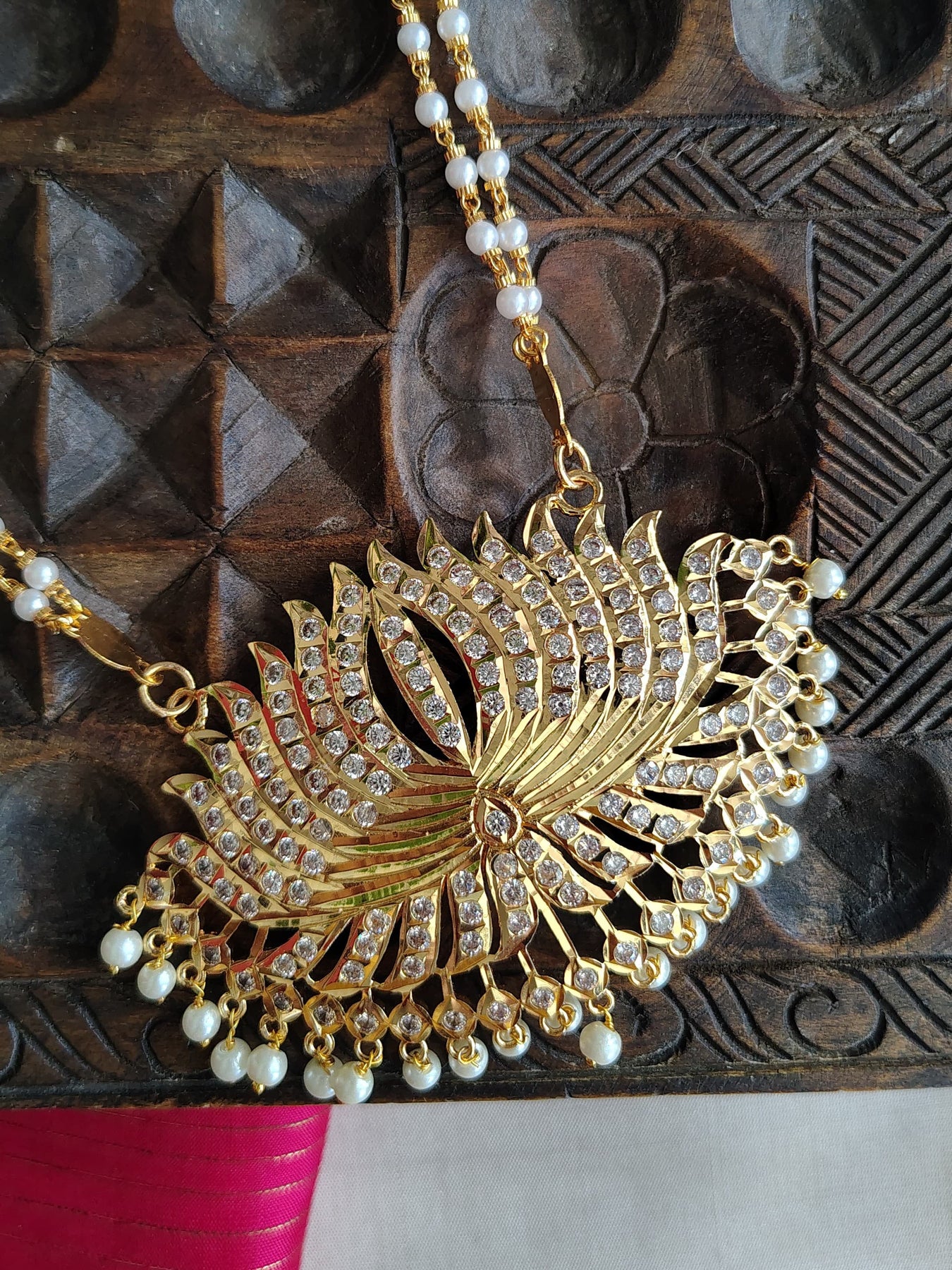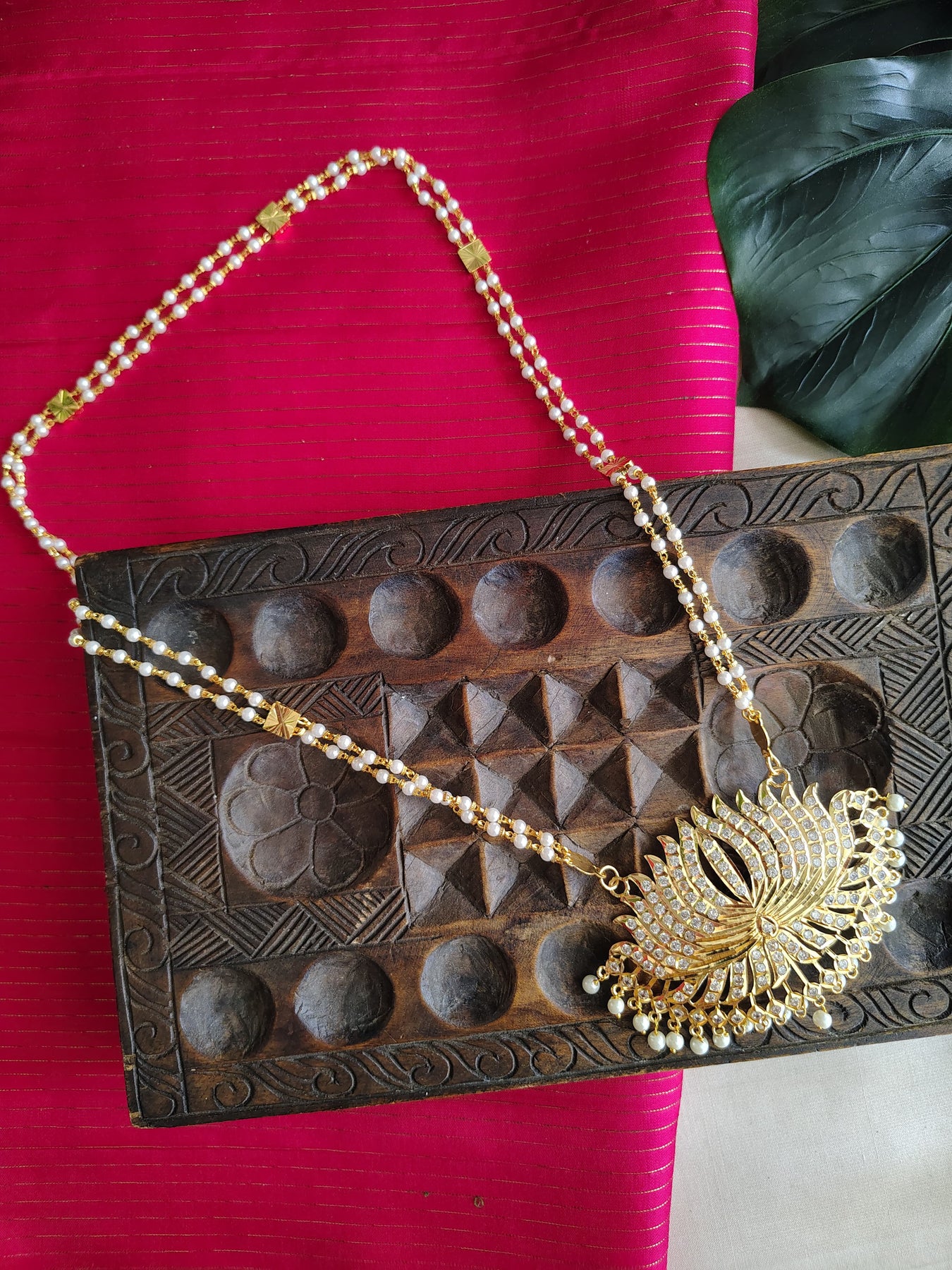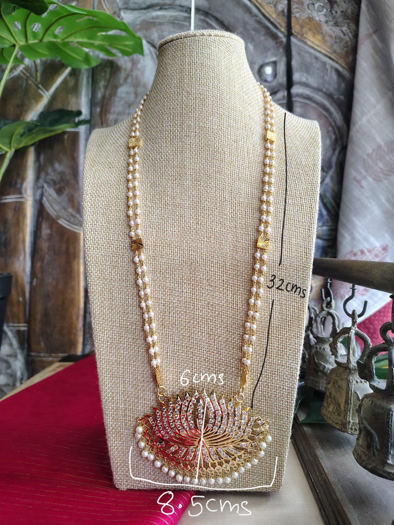 Pearl Necklace, and a Lotus Pthakkam ornated with American Diamond (AD) stones