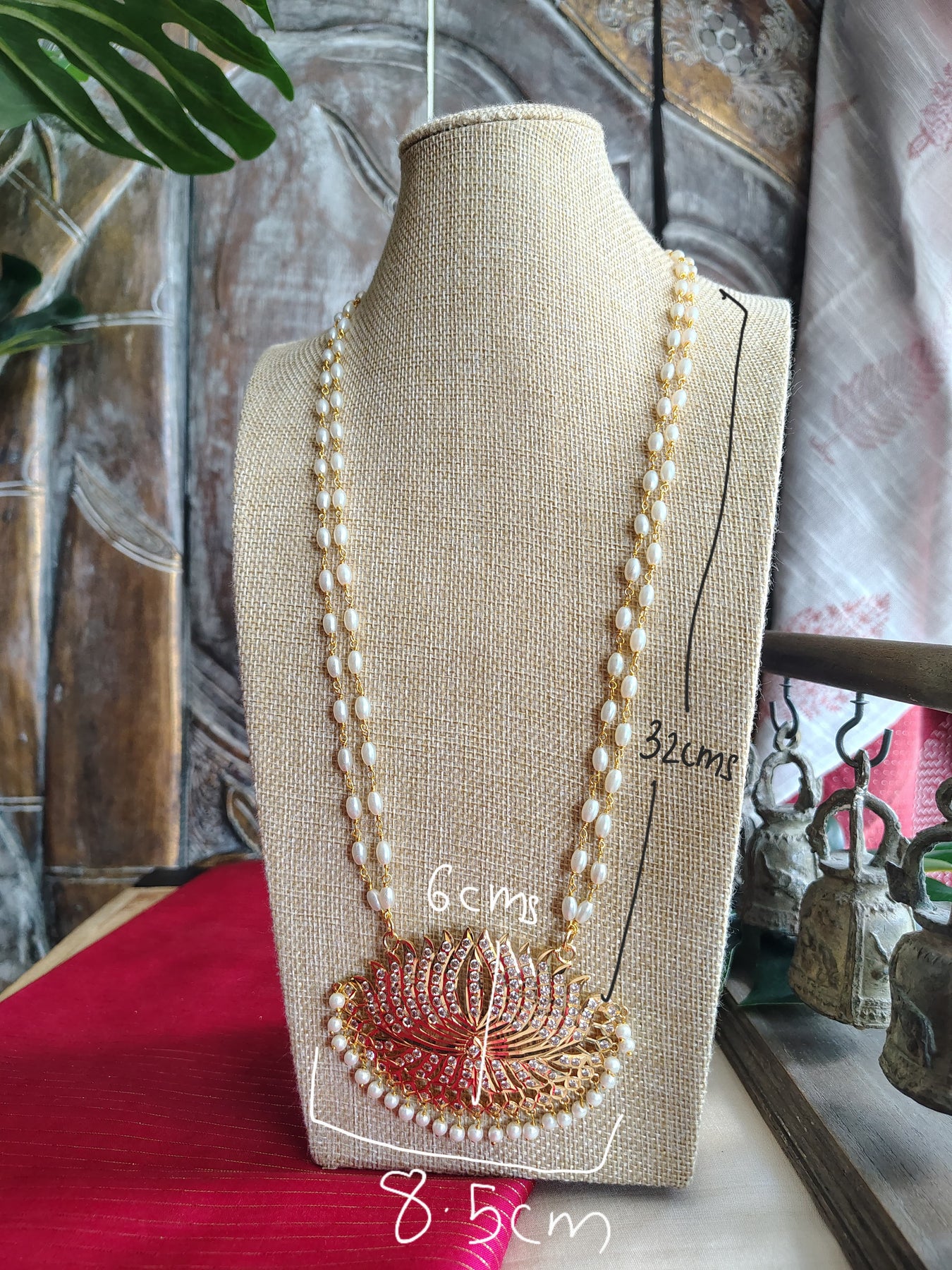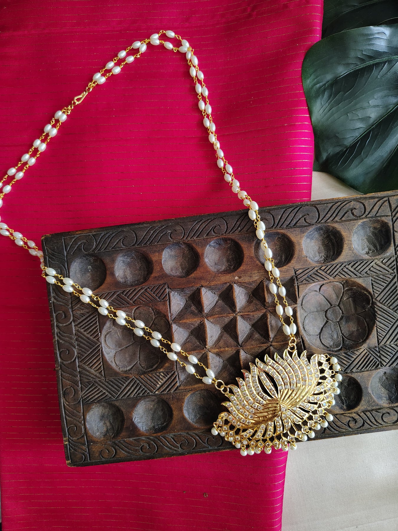 Pearl Necklace, and a Lotus Pthakkam ornated with American Diamond (AD) stones