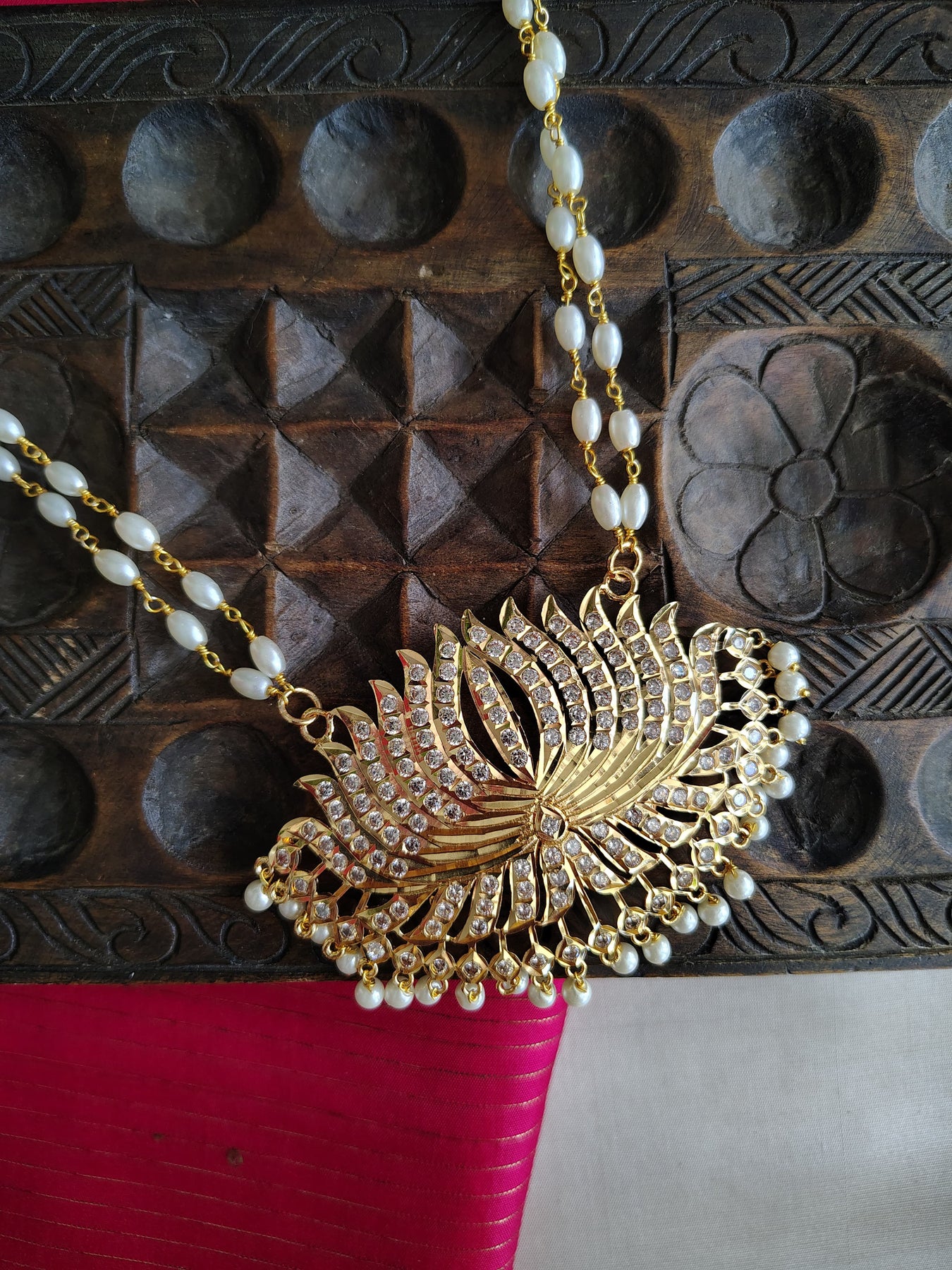 Impon & Pearl Necklace with a Lotus Pathakkam