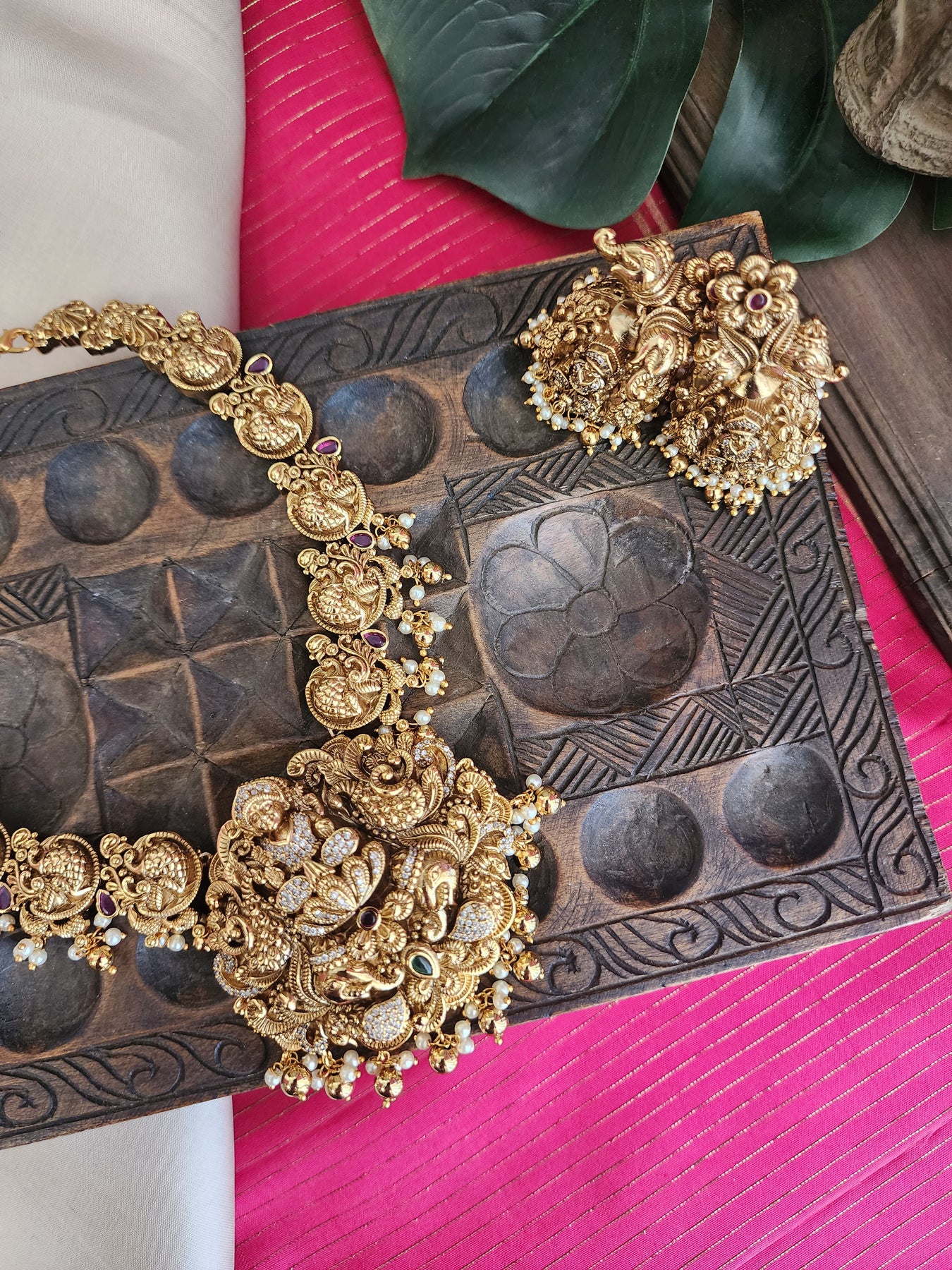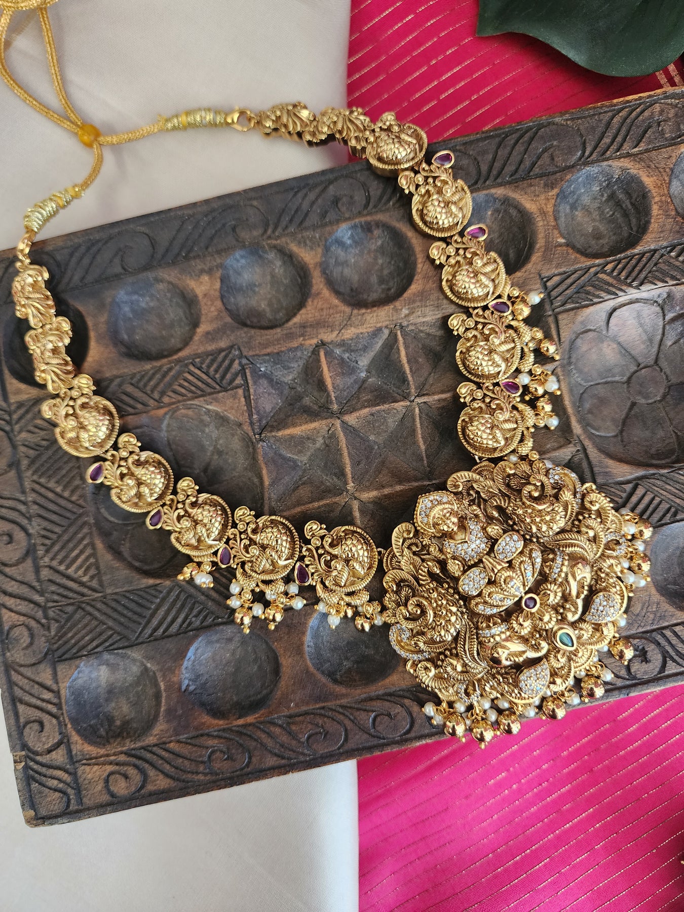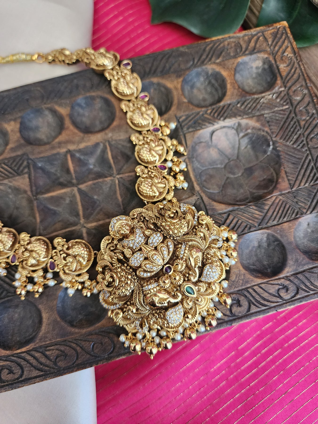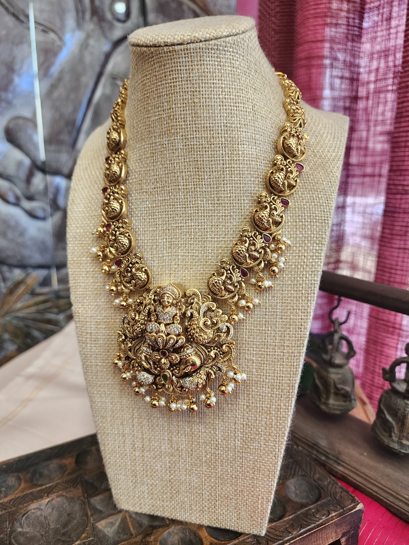 A beautiful Lakshmi Necklace ornated with stones & beautifully finished with pearls