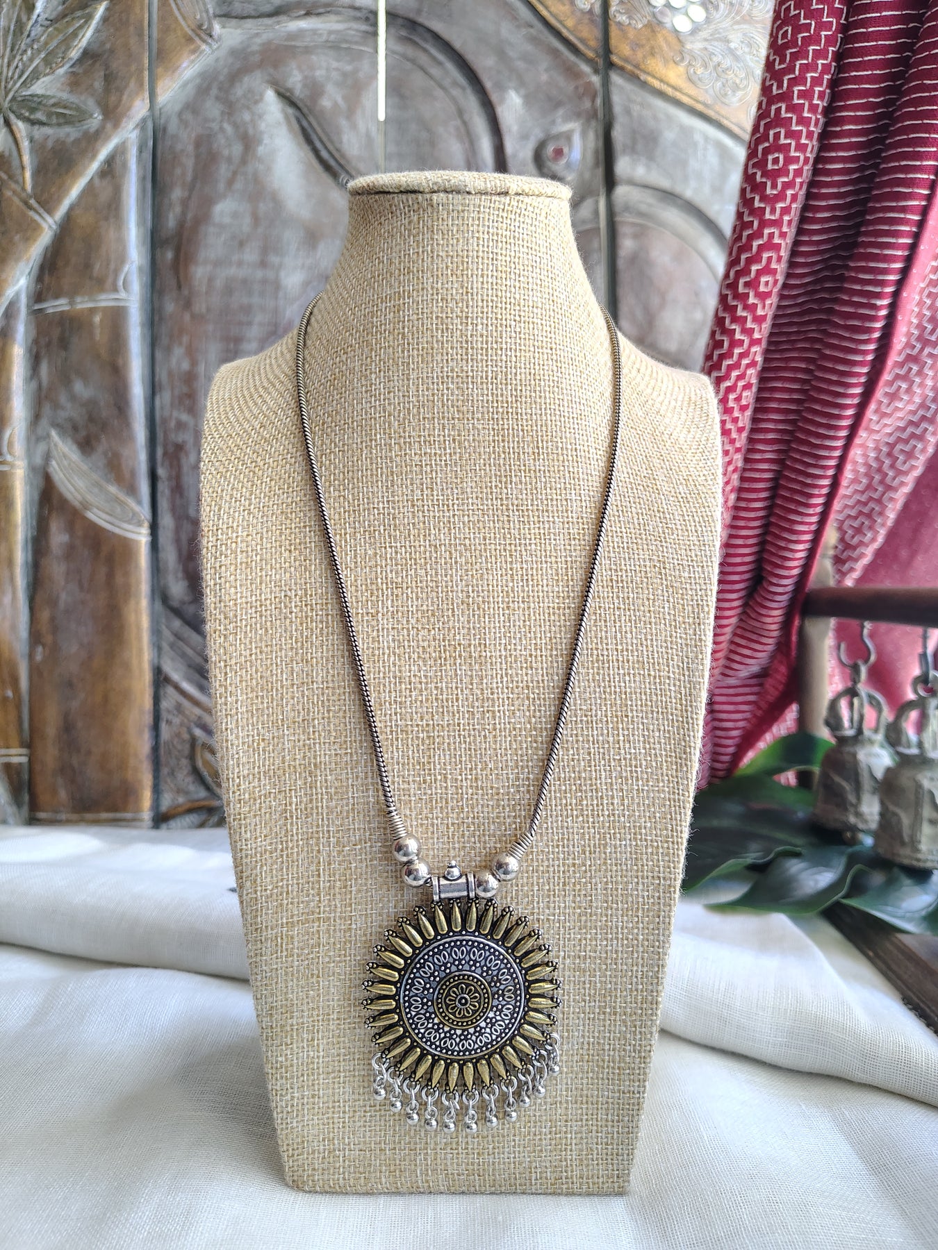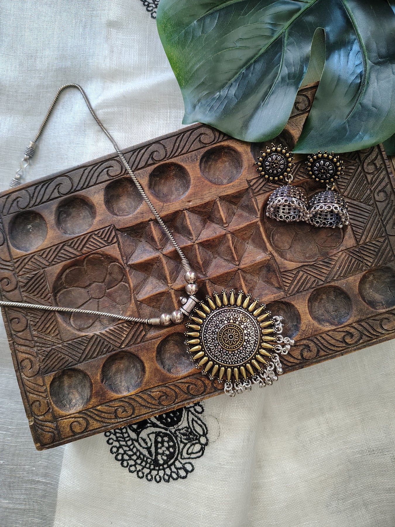 Oxidized Silver Chain Necklace paired with matching Jhumkas