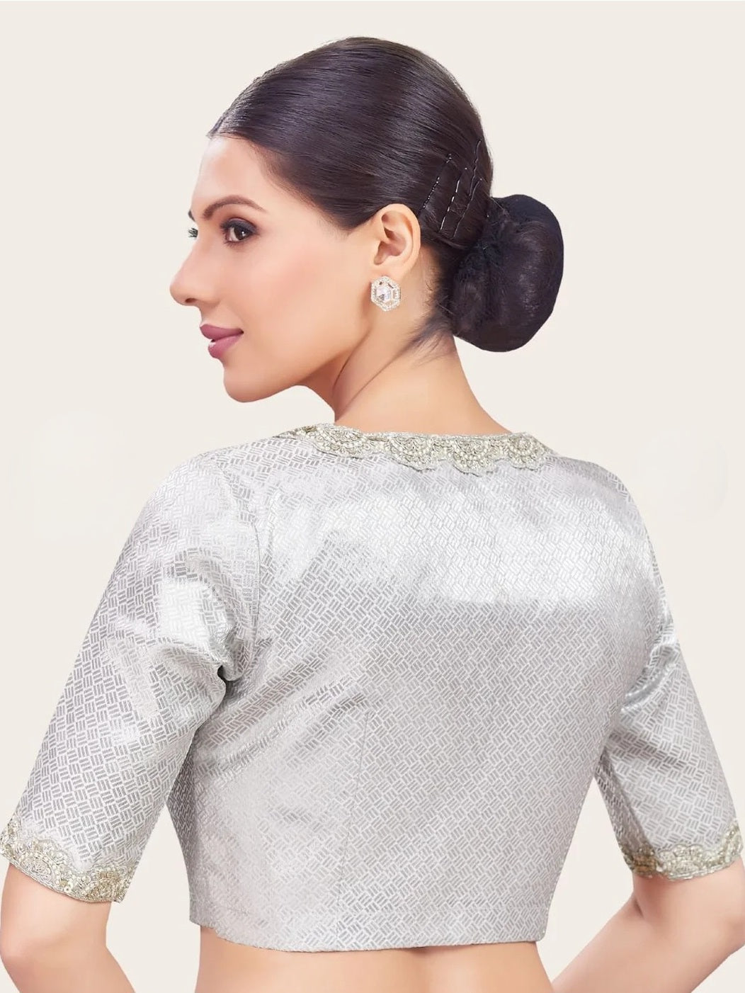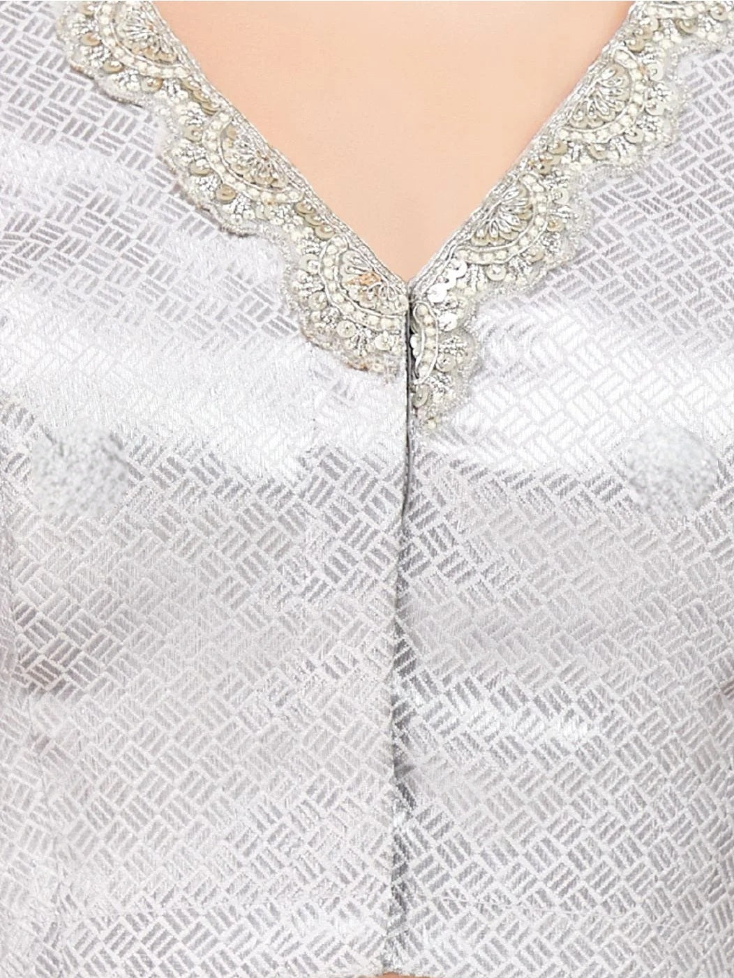 Silver Brocade Blouse with Embellishments